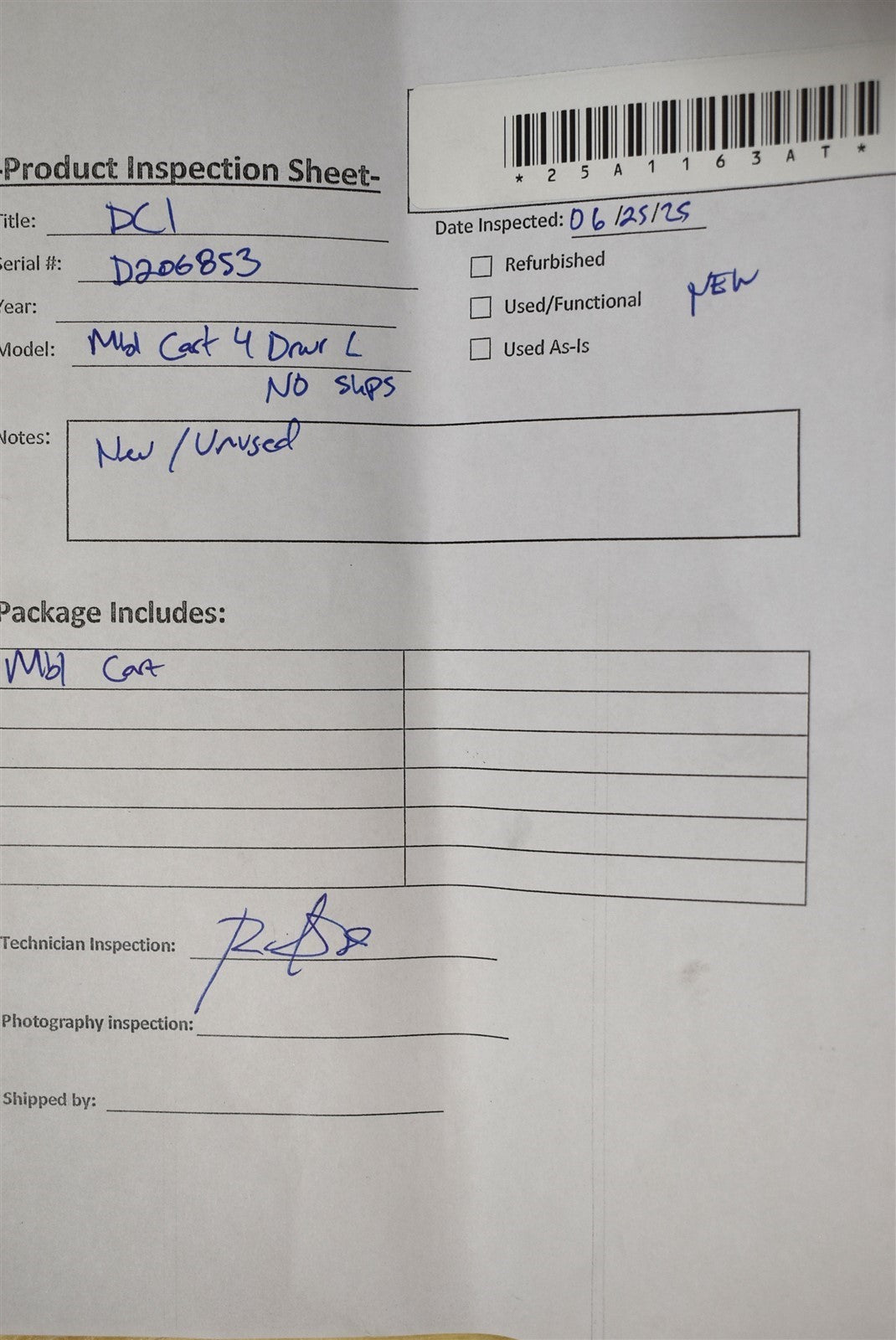 Visually inspected for damages and missing parts and accessories. The unit is new/unused.