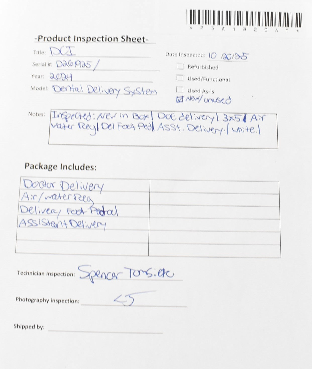 Doctor Delivery, Air/Water Reg, Delivery Foot Pedal, Assistant Delivery