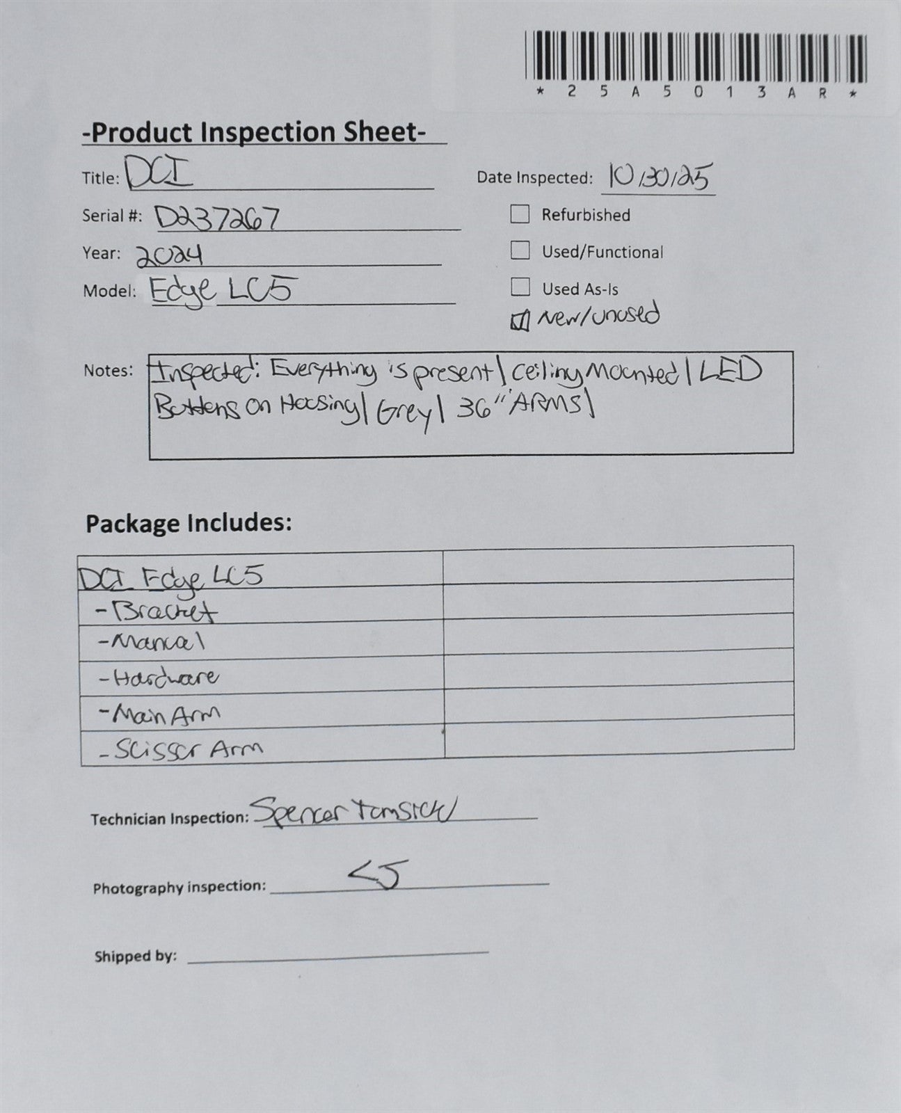 DCI Edge LC5, Bracket, Manual, Hardware, Main Arm, Scissor Arm