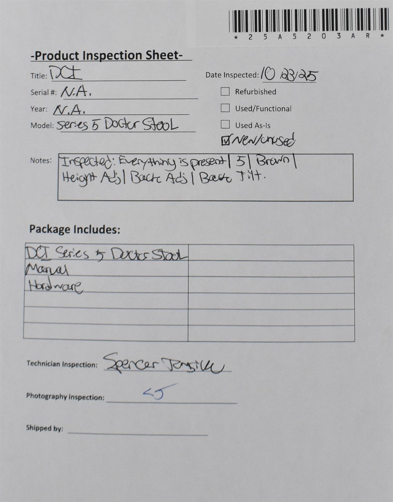 DCI Series 5 Doctor Stool, Manual, Hardware