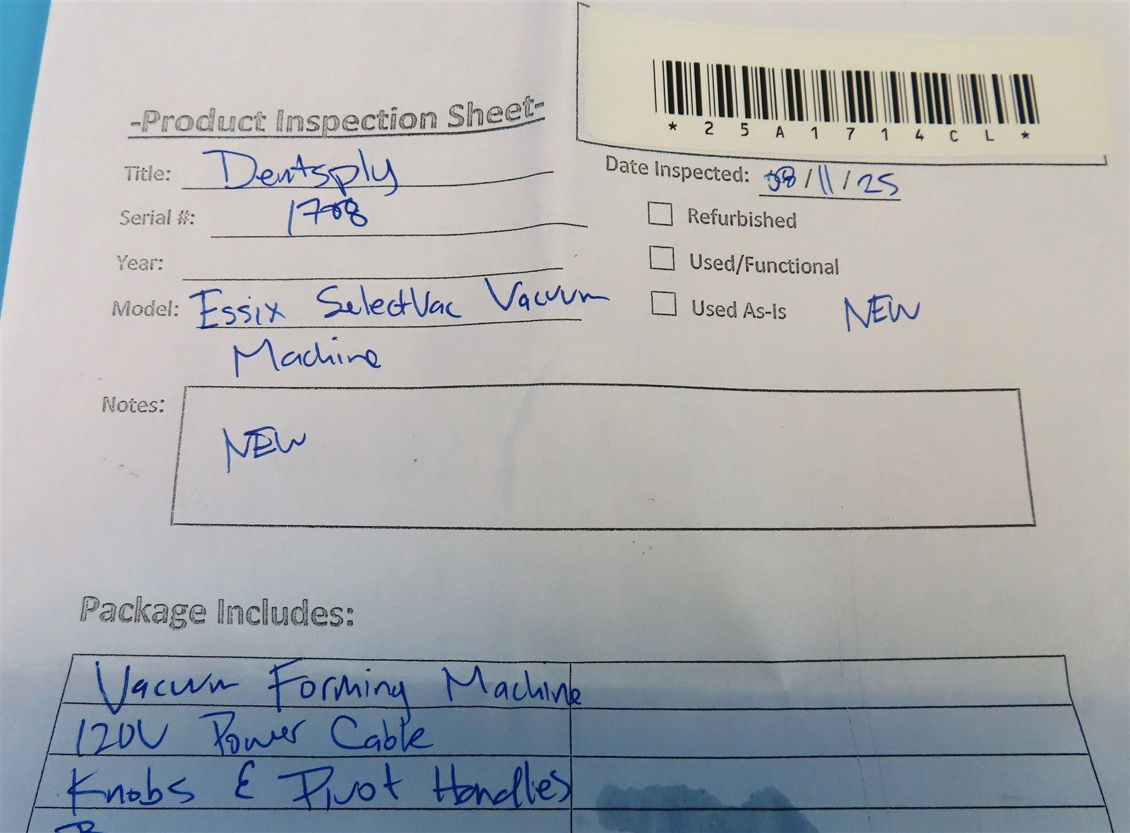 Essix SelectVac, 120V Power Cable, Knob & Pivot Handles