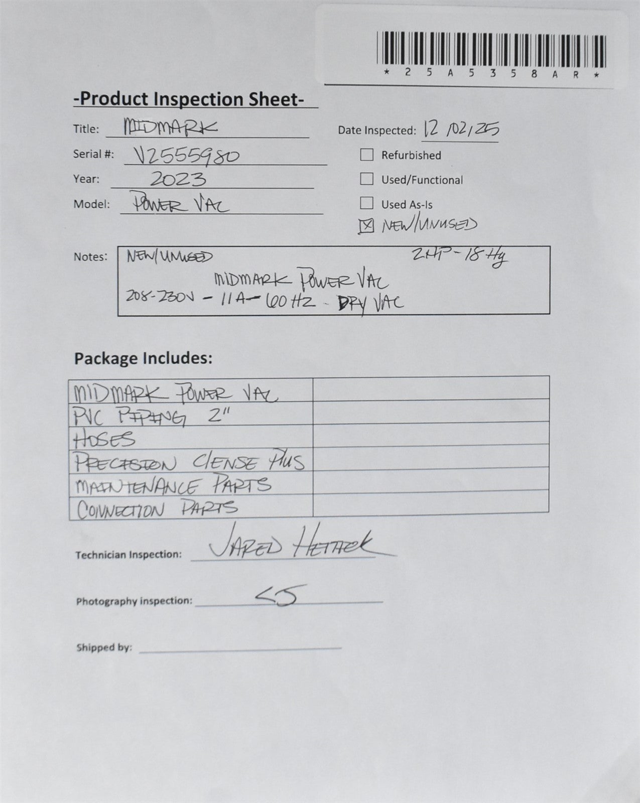 Midmark Power Vac, PVC Piping 2", Hoses, Percison Clense Plus, Maintenance Parts, Connection Parts.