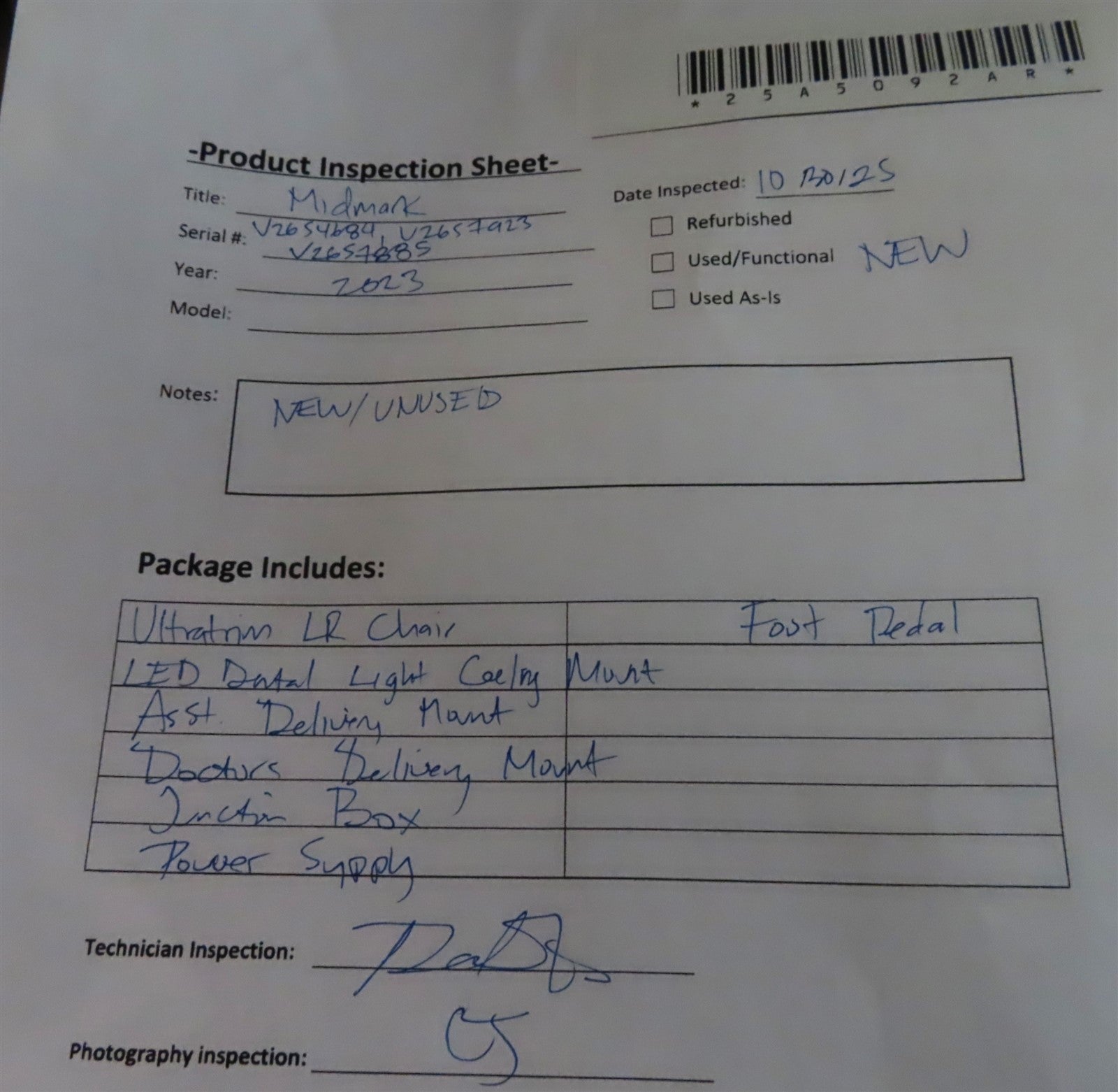 - Exam Chair Serial Number: V2654684, V2657923, V2657885