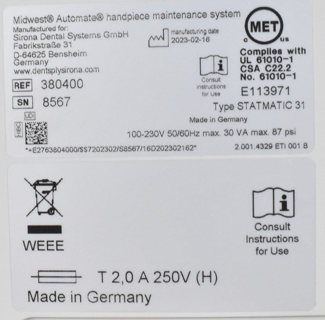- Manufacturer: Dentsply Sirona
