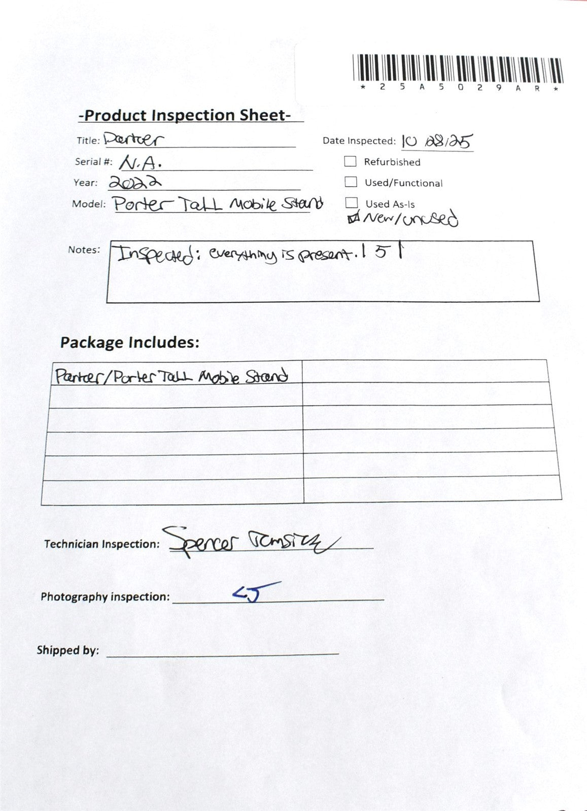 Verified that all components are present, undamaged, and document condition without powering on the unit