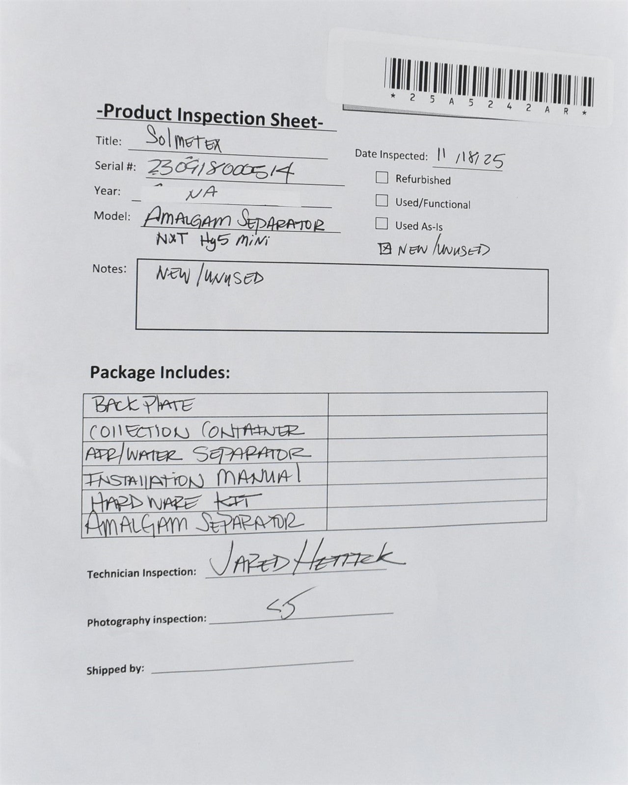 NEW UNUSED Solmetex NXT Hg5 Dental Amalgam Separator System