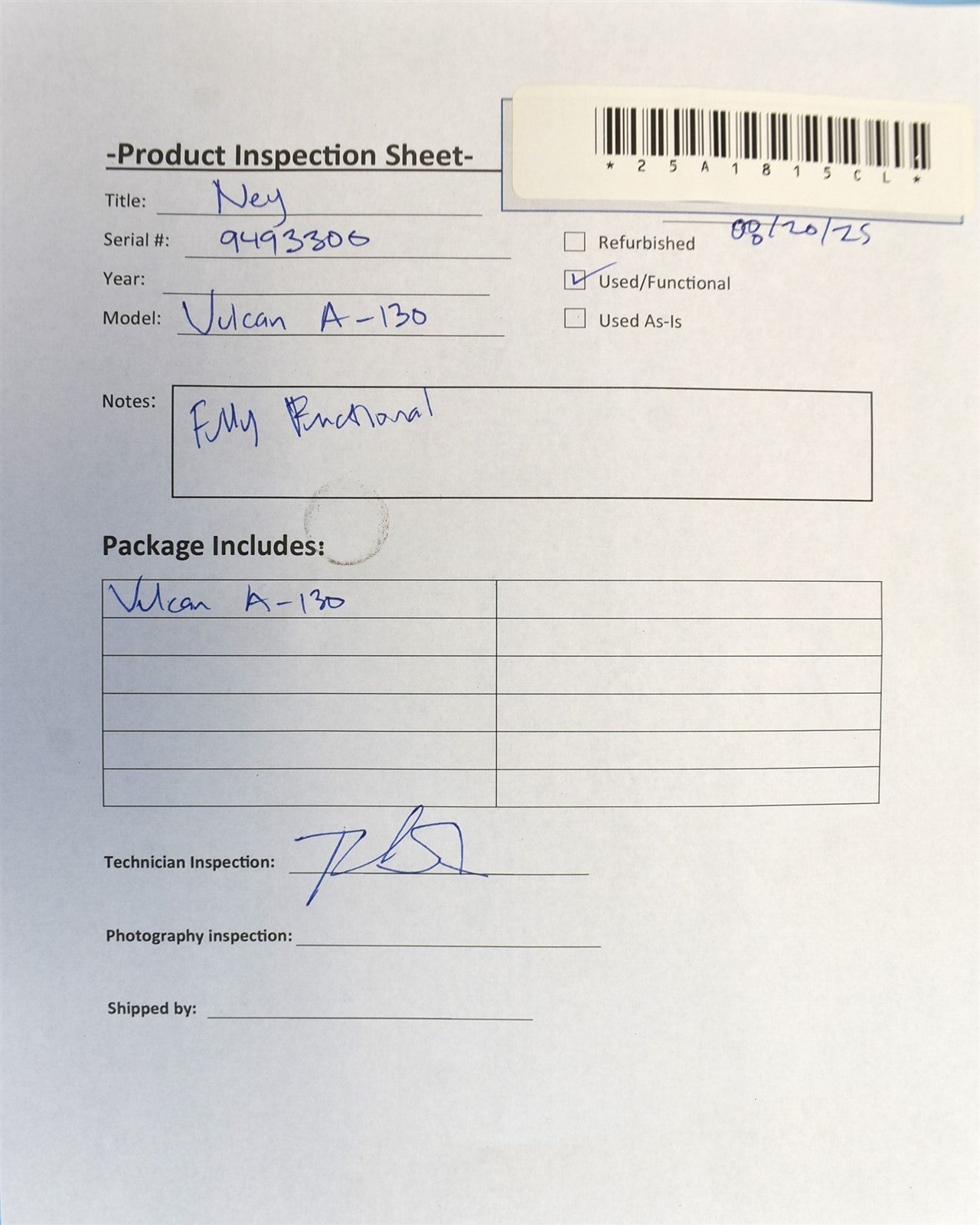 - Model: Vulcan A-130