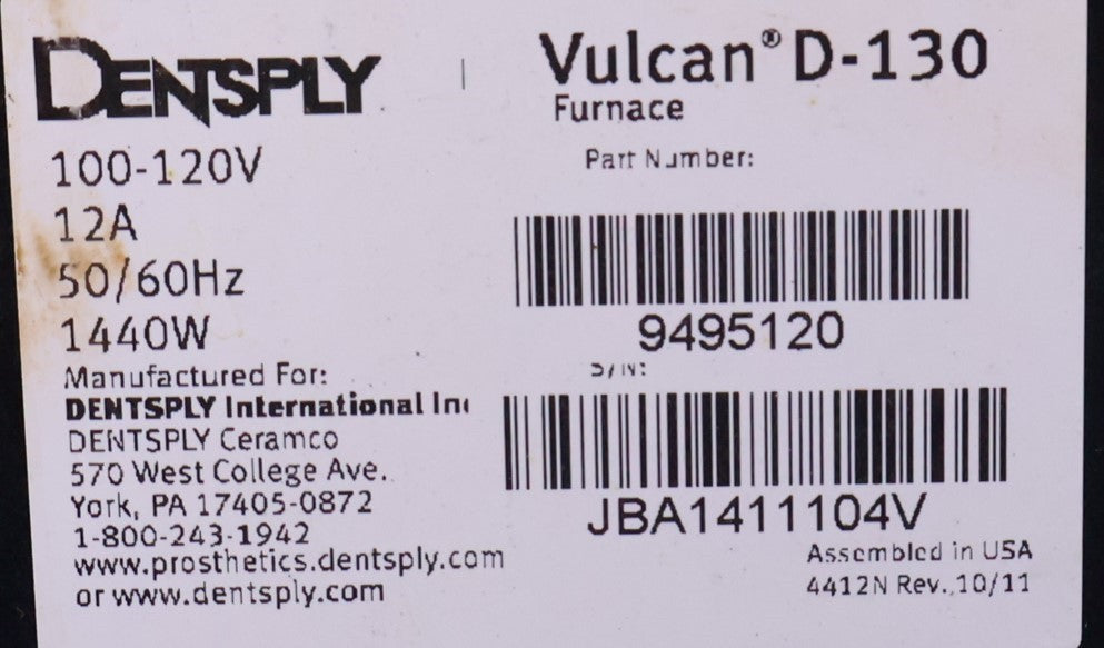 Ney Vulcan D-130 Dental Restoration Burnout Furnace