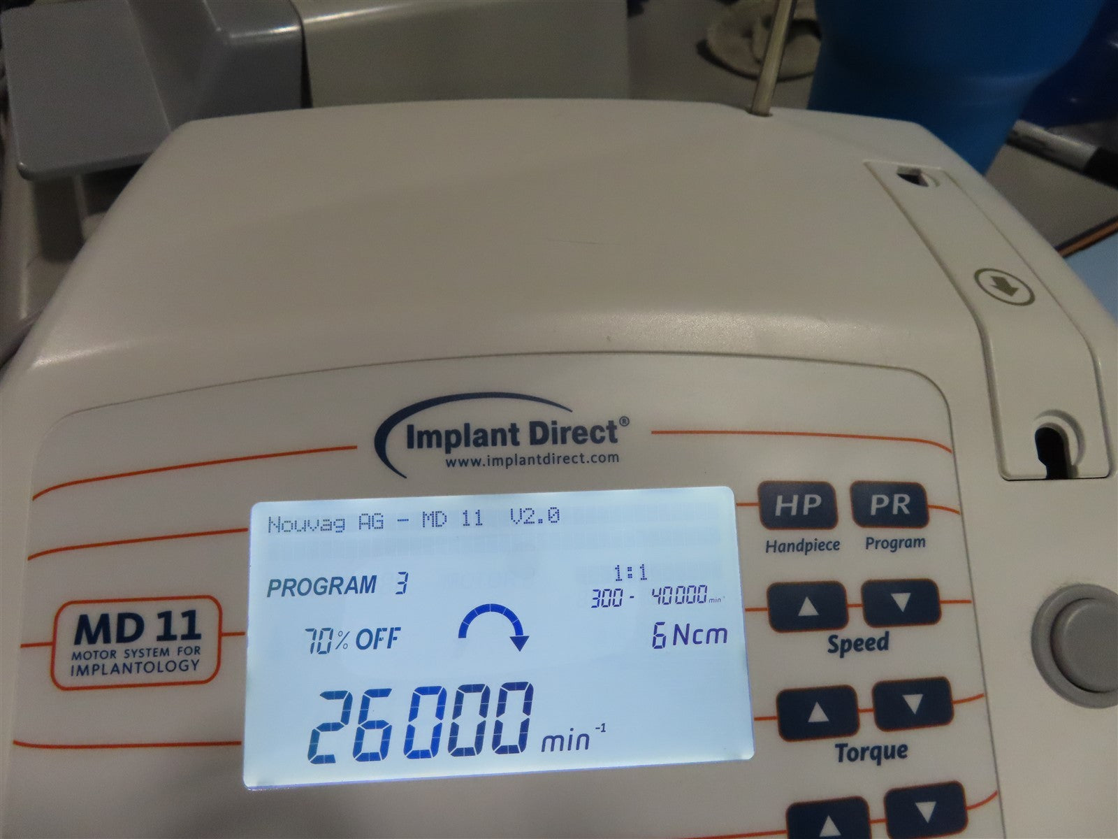 Nouvag Implant Direct MD11, 120 volt power cord, Handpiece Motor, Handpiece ( Nouvag+ ), Foot pedal, Metal stand.