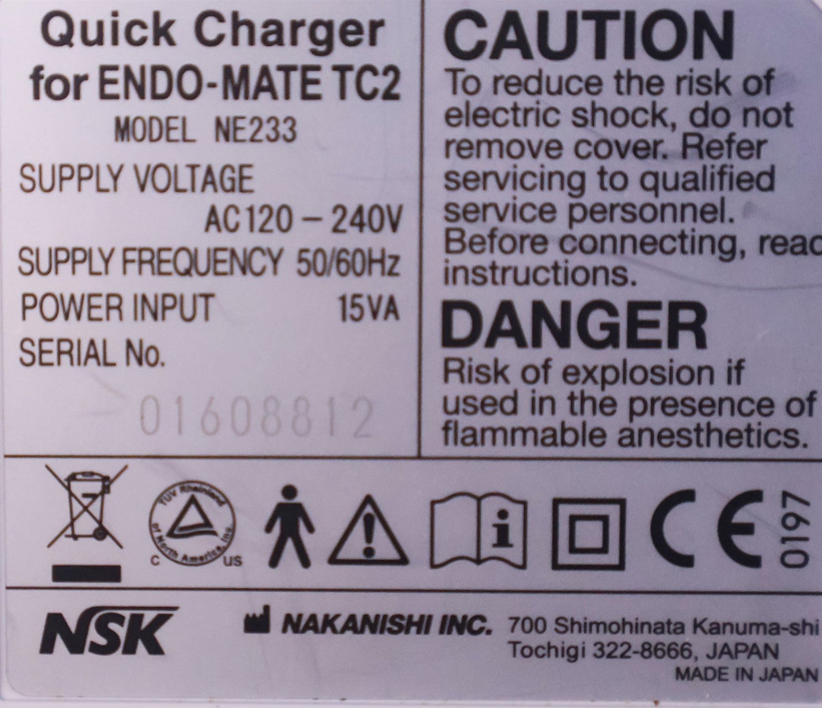 Endo-Mate TC2, Power Cable, Charging Station, Instruction Manual