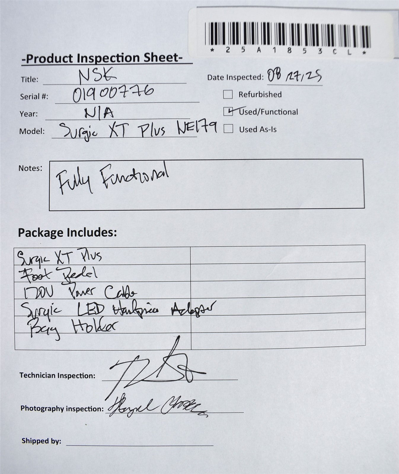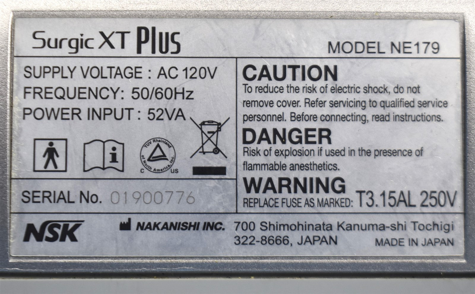 - Model: Surgic XT Plus Model NE179