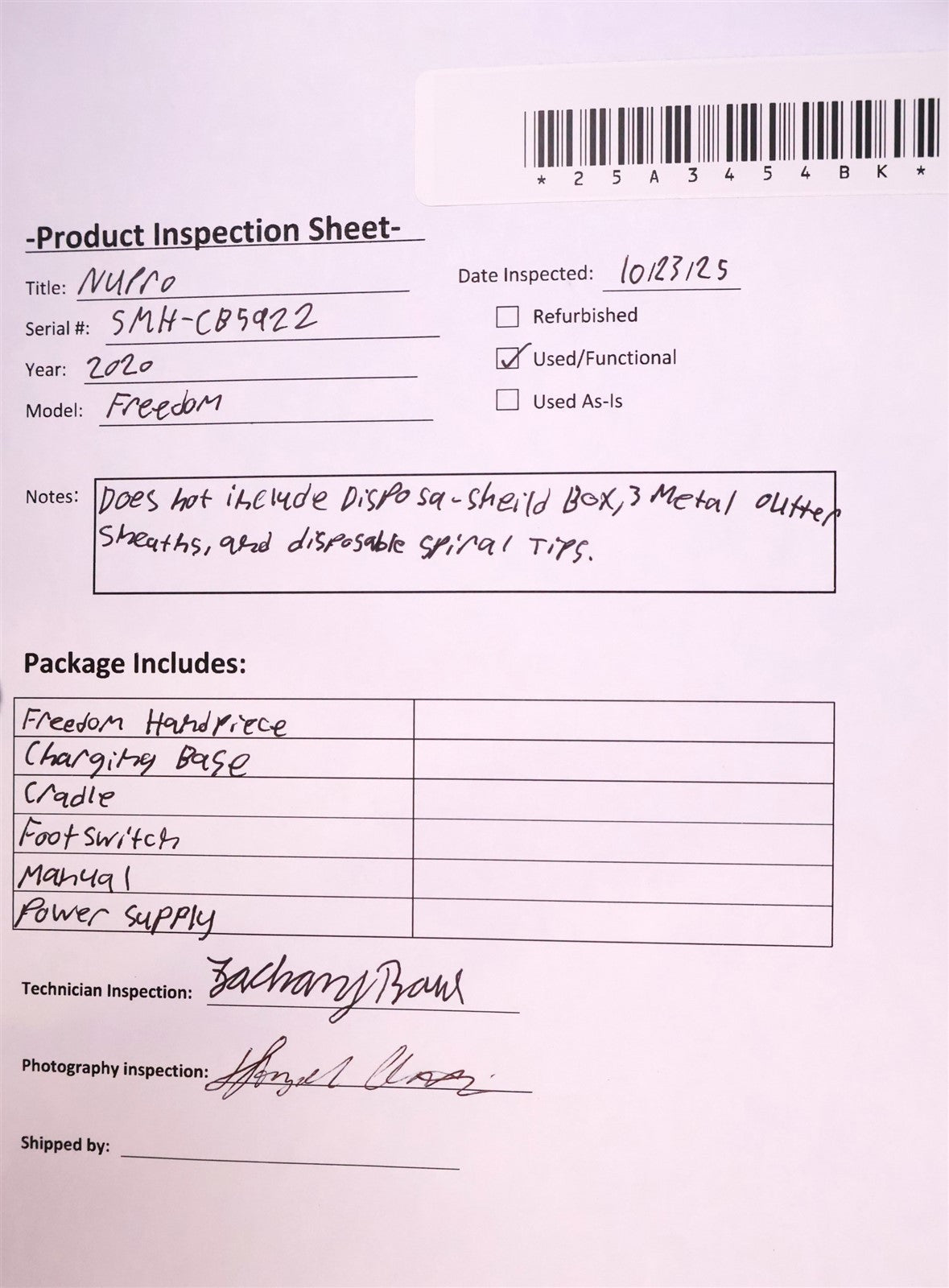 Your purchase will NOT include: Disposa-Shield Box 3 Metal Outter Sheaths Disposable Spiral TipsThis product is pre-owned and may not include the same accessories as a new, unused unit. - other accessories not shown or listed here.This item has undergone a thorough visual inspection and functional testing to check for any and all defects. The unit has been confirmed to be in complete working condition, with no issues or malfunctions detected.