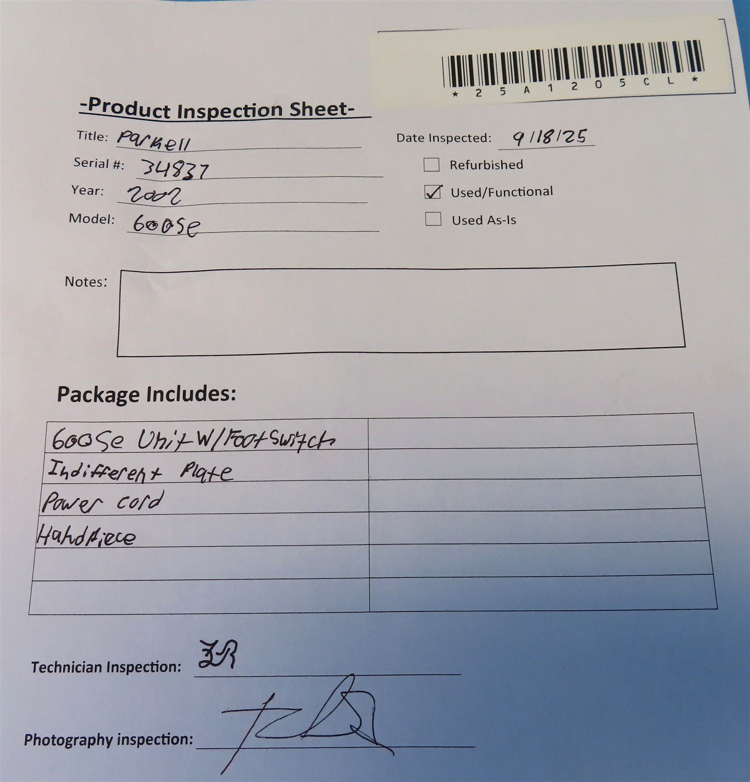 600SE Unit w/Footswitch Indifferent Plate Power Cord Handpiece