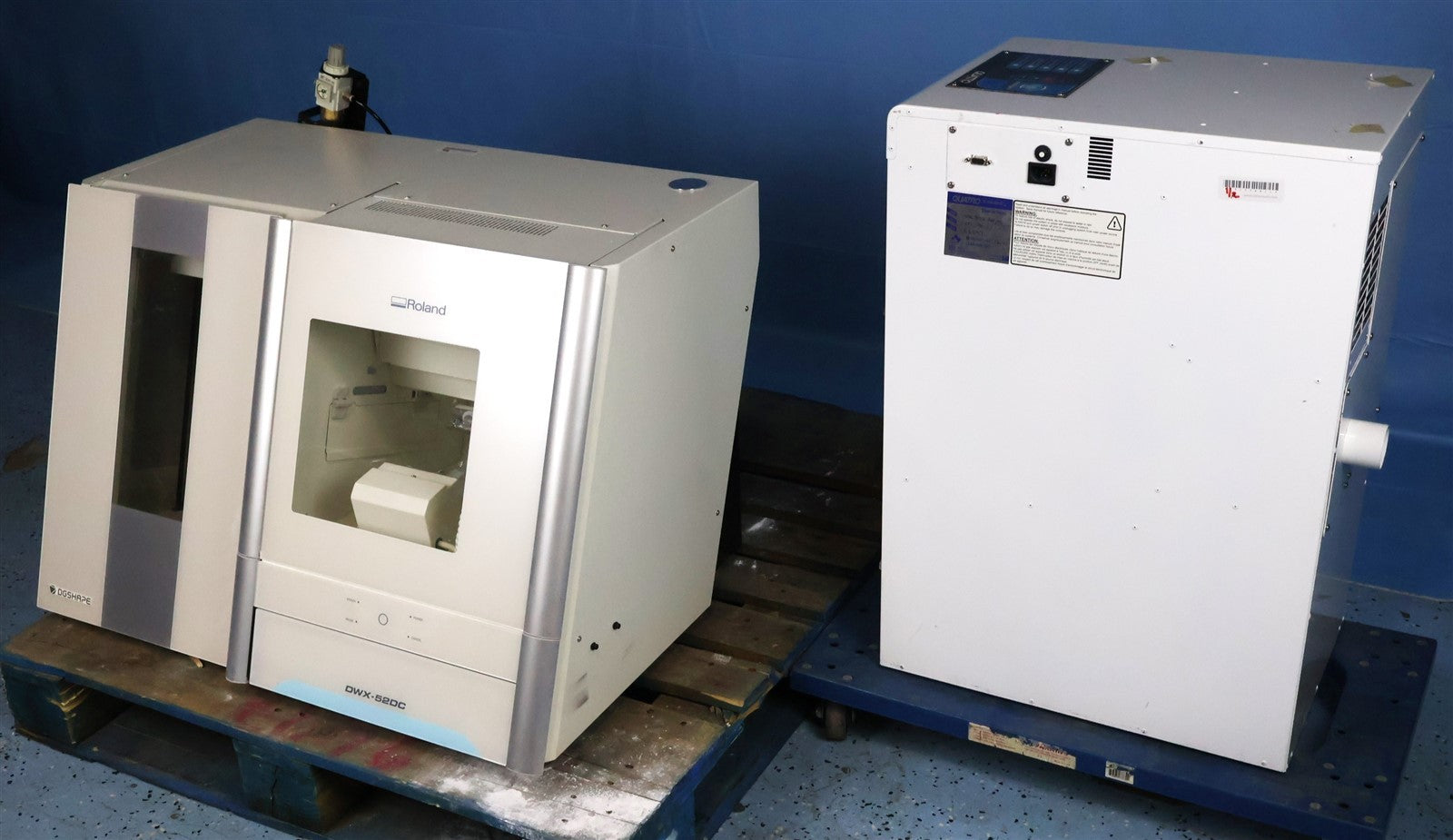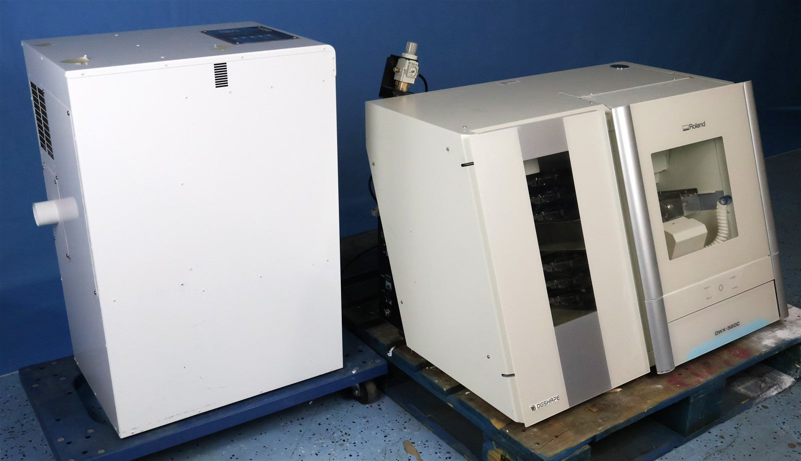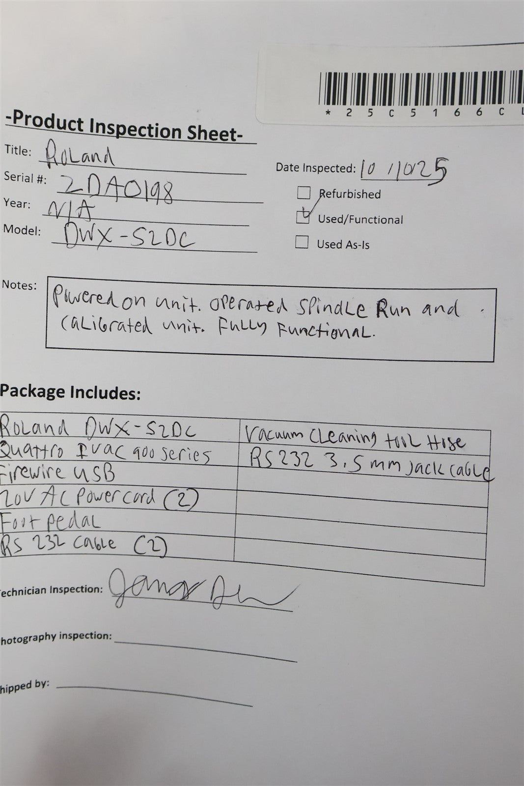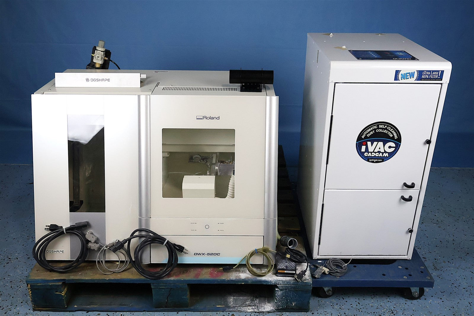 Roland DWX-52DC Milling Unit, Quattro Ivac 900 Series, Firewire USB, 2 120V AC Power Cables, Foot Pedal, RS 232 3.5mm jack Cable, 2 RS 232 Cables, Vacuum Cleaning Tool Hose.