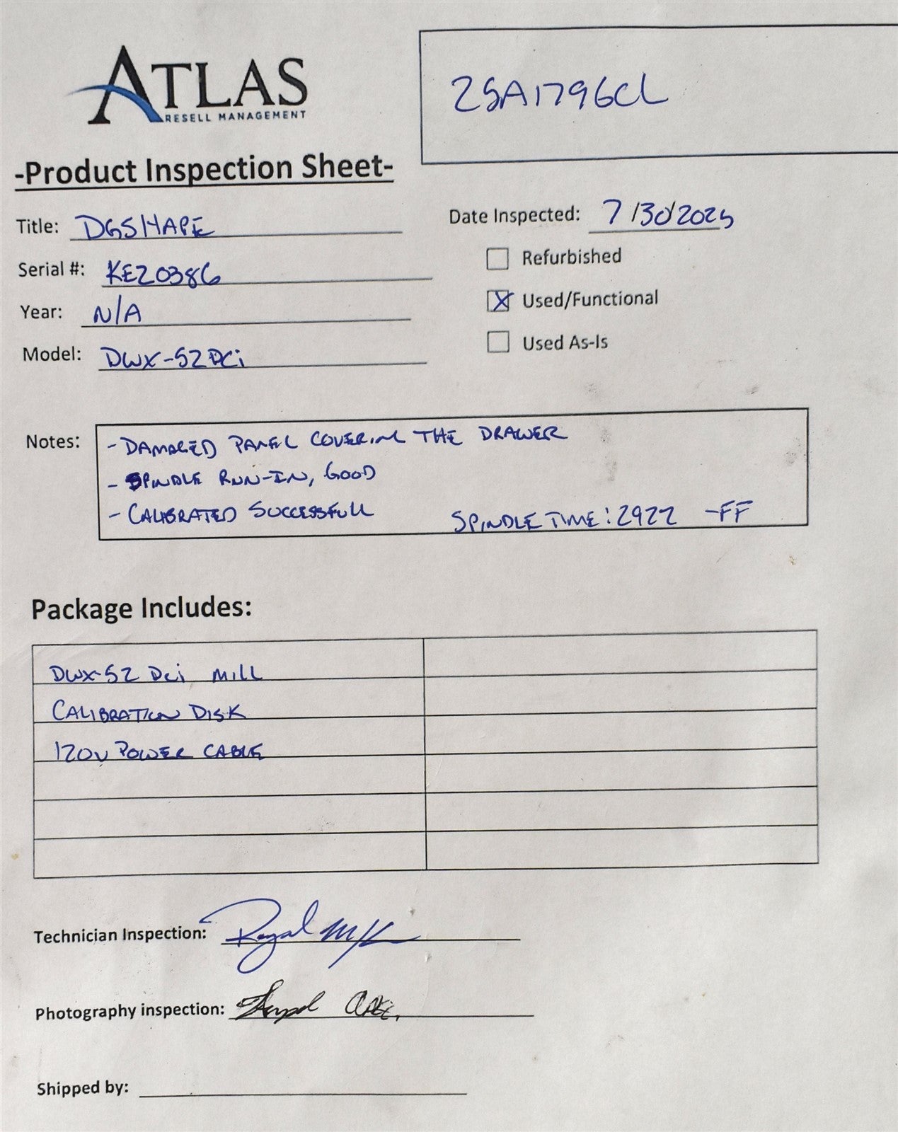 Dwx-52DCi Milling Unit, 120v Power Cable, Calibration disk