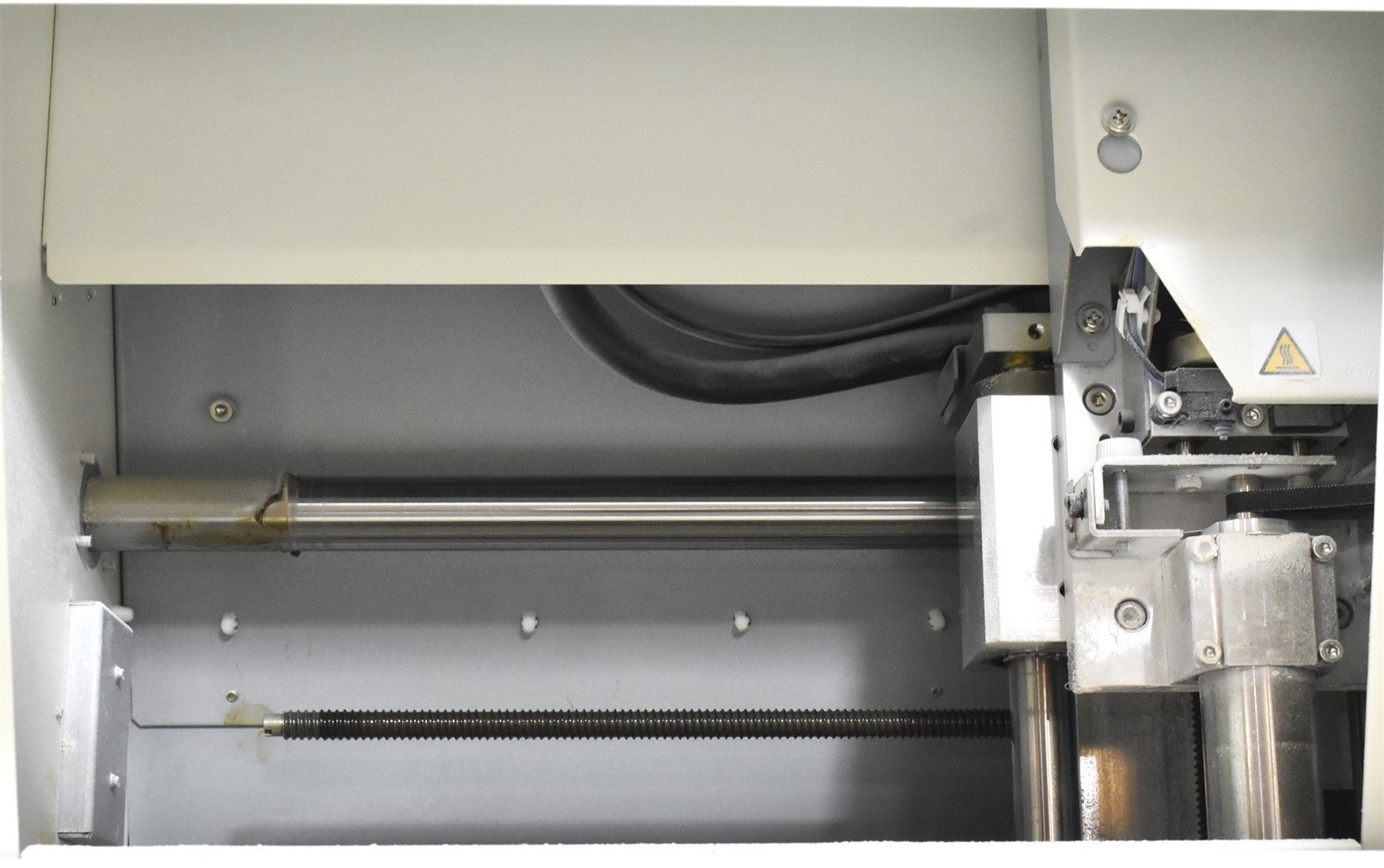 Visually inspected the unit for any damaged or missing parts and accessories. The plexiglass the covers the drawer is damaged and needs to be replaced. Connected the unit to pressurized air supply and plugged it into a 120v Power outlet. Connected the unit to computer and powered it on. Ran the "spindle Run-In" (completed without errors). Calibrated the unit (completed successfully and without error). This unit is fully functional with good cosmetic condition