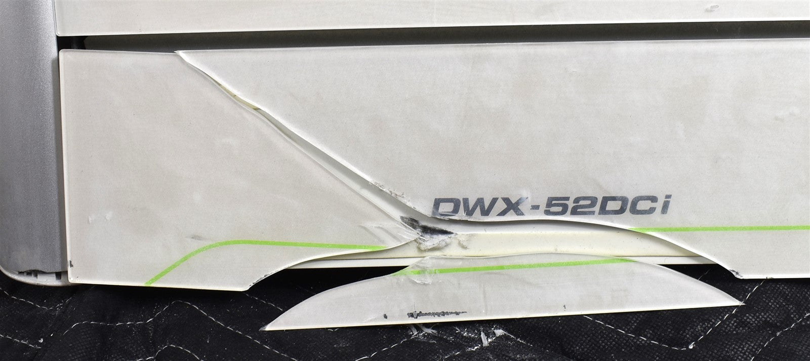 Visually inspected the unit for any damaged or missing parts and accessories. The front label on the bottom drawer is damaged. Connected the unit to a computer. Ran the spindle run-in and it completed without any errors. Calibrated the unit. The unit calibrated successfully. This unit is fully functional. Contacted DGShape for a quote on the price for the missing panel and damaged front cover.