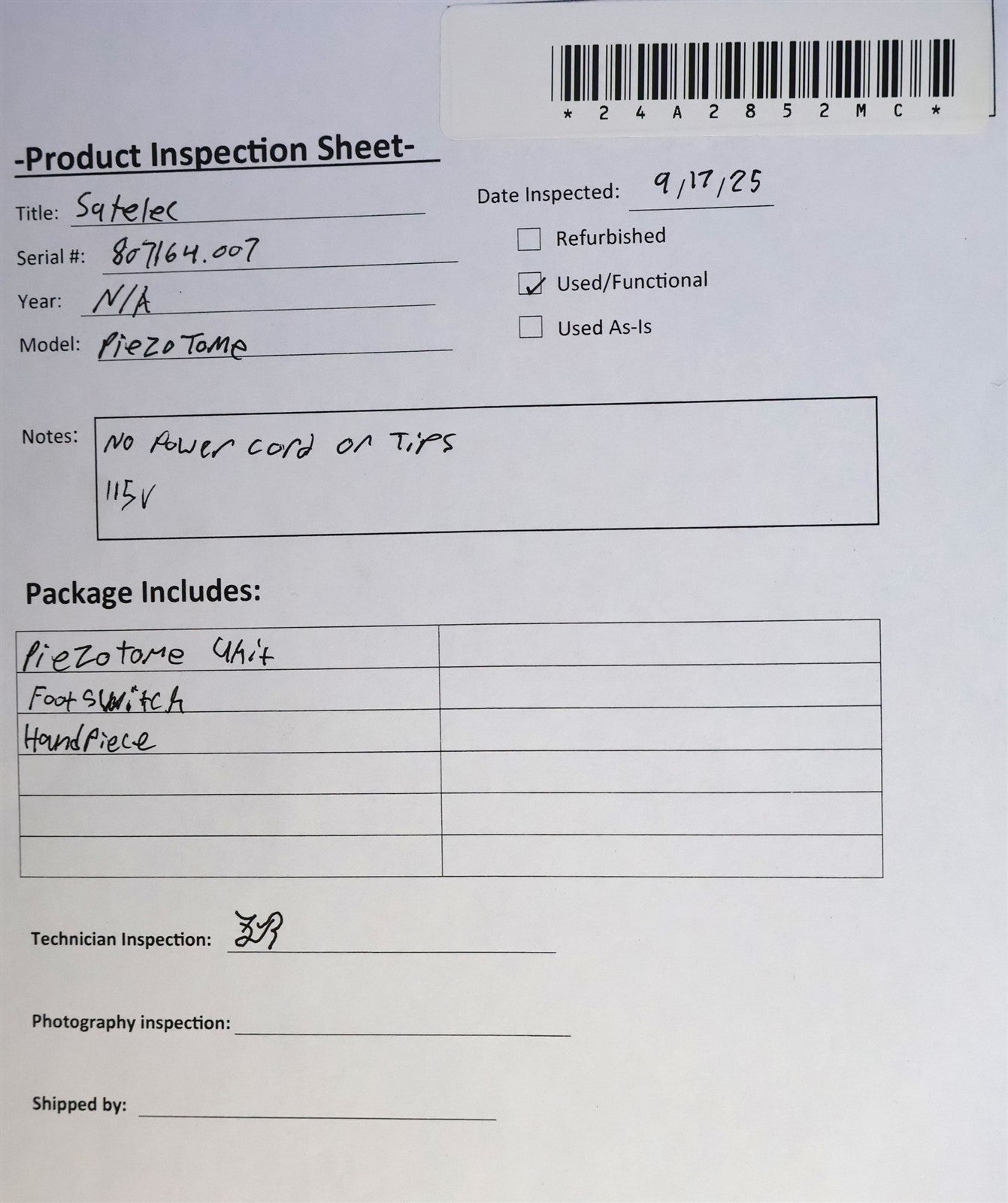 - Model: Piezotome Piezo Surgery Console