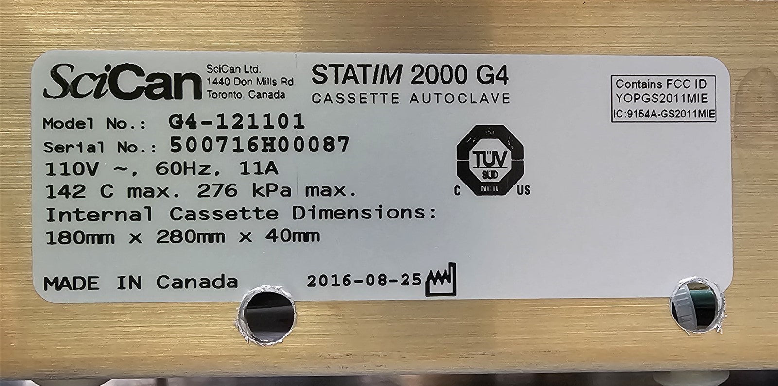 This autoclave was put through an initial functionality test, to prove that it does indeed work. Once it was proven to operate correctly, it was then connected to the internet via it's own built Ethernet connection, and a new feature update was successfully installed. This particular STATIM 2000 G4 has both the Wi-Fi and Ethernet internet connectivity options. This sterilizer was then disassembled down to it's bare chassis, cleaned, and reassembled. Preventive maintenance parts were installed, which include, a new Water Pump, Air Valve, Check Valve, Biological Filter and Compressor Air Filter. The Reservoir Tank was cleaned and flushed and a Water Pump Filter were installed. A new Touch Screen Display were installed. The sterilizing cassette was also cleaned and a new Cassette Seal was installed. Prior to running test cycles on this sterilizer, the temperature sensors were calibrated. Then this autoclave was tested through all it's preset sterilizing and drying cycles multiple times. To verify that this unit is achieving it's highest maximum required sterilization temperature, it was tested using a Max Register Thermometer and found to exceed 273 F while running a sterilization cycle.