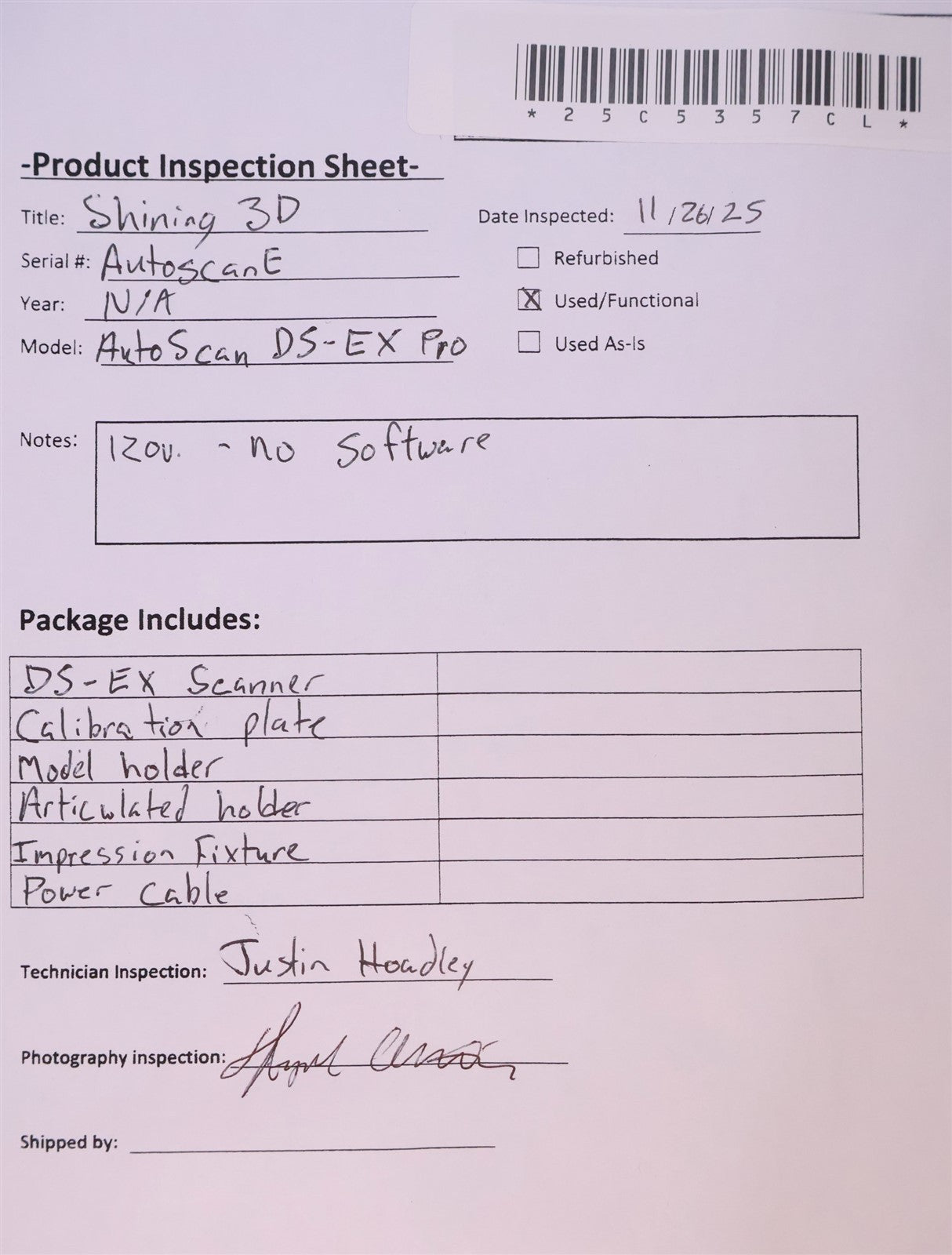 Atlas Resell Management has more experience testing and shipping CEREC and other CAD/CAM units than anyone else on eBay. Just check out the wide selection of CAD/CAM units in our store.We're proud to be the most trusted source for quality used CAD/CAM units in the pre-owned dental equipment market. Your purchase will NOT include:Software or DriversThis product is pre-owned and may not include the same accessories as a new, unused unit. - other accessories not shown or listed here.The unit was powered on and subjected to a preliminary visual inspection. All cooling fans engaged as expected and indicator lights illuminated, confirming basic hardware functionality. This device requires Exocad software to bind with the Shining 3D Driver.