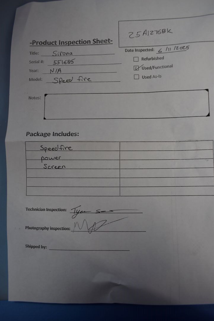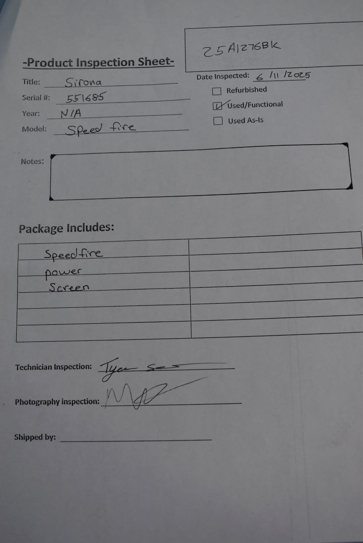 Your purchase will NOT include: This product is pre-owned and may not include the same accessories as a new, unused unit. - other accessories not shown or listed here.I set this unit up and ran a temperature test. This speedfire completed the entirety of the cycle. This unit is fully functional and is in pretty good cosmetic condition. It has a couple marks on the sides but nothing crazy.