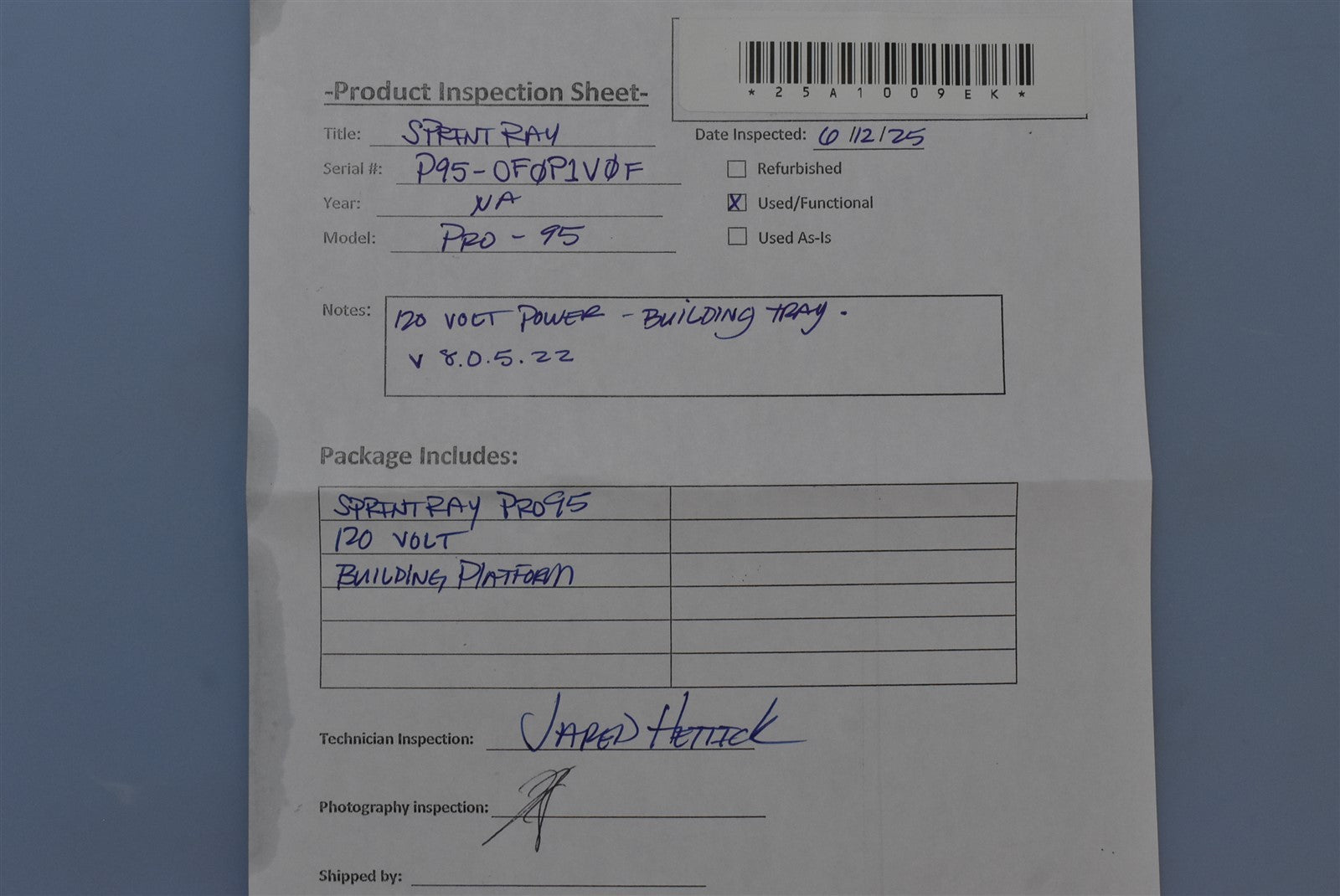 SPRIMT RAY PRO95, 120 volt power cord, Building platform.