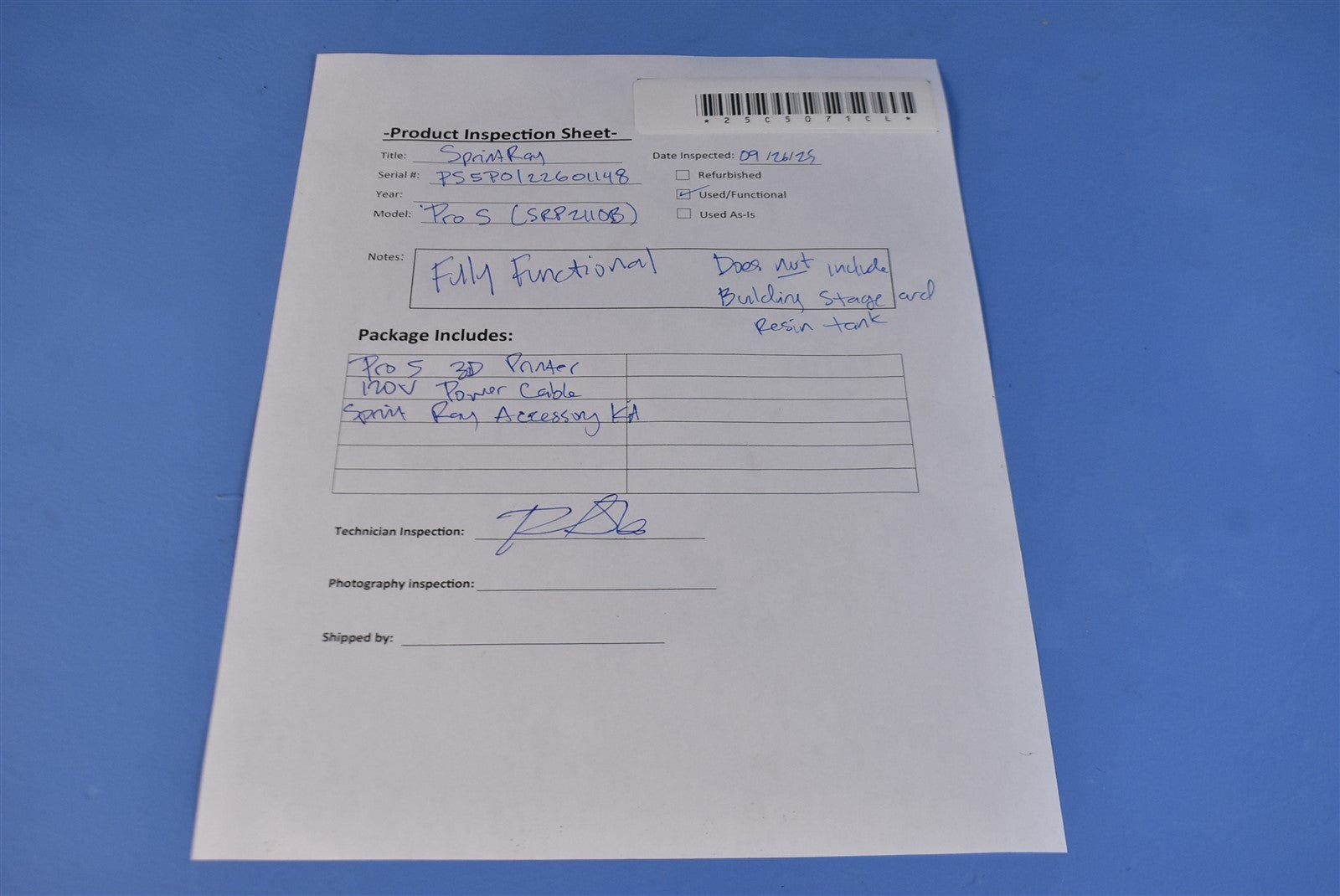 Unit does not include building platform or resin tank.This product is pre-owned and may not include the same accessories as a new, unused unit.