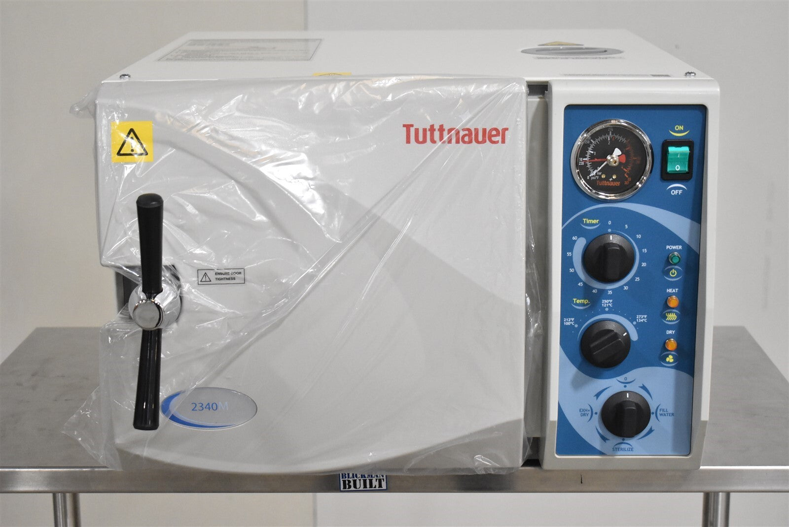 Tuttnauer 2340M, 120v Power Cable, Drain Tube, Autoclave Log Book, Manuals, Chamber Bright Cleaning Tabs, 1 Rack, 3 Trays, Tray Holder