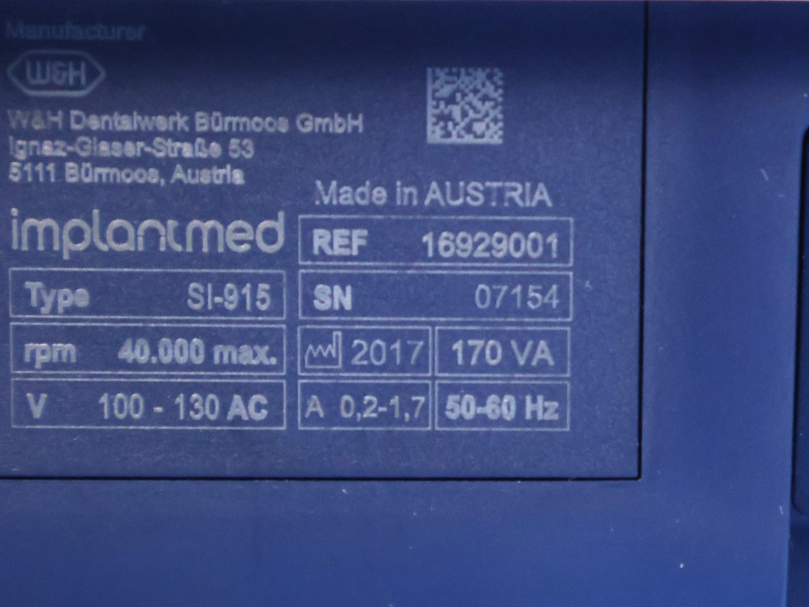 W&H Dental ImplantMed SI-915 Implant Motor System & Control Console SOLD AS IS
