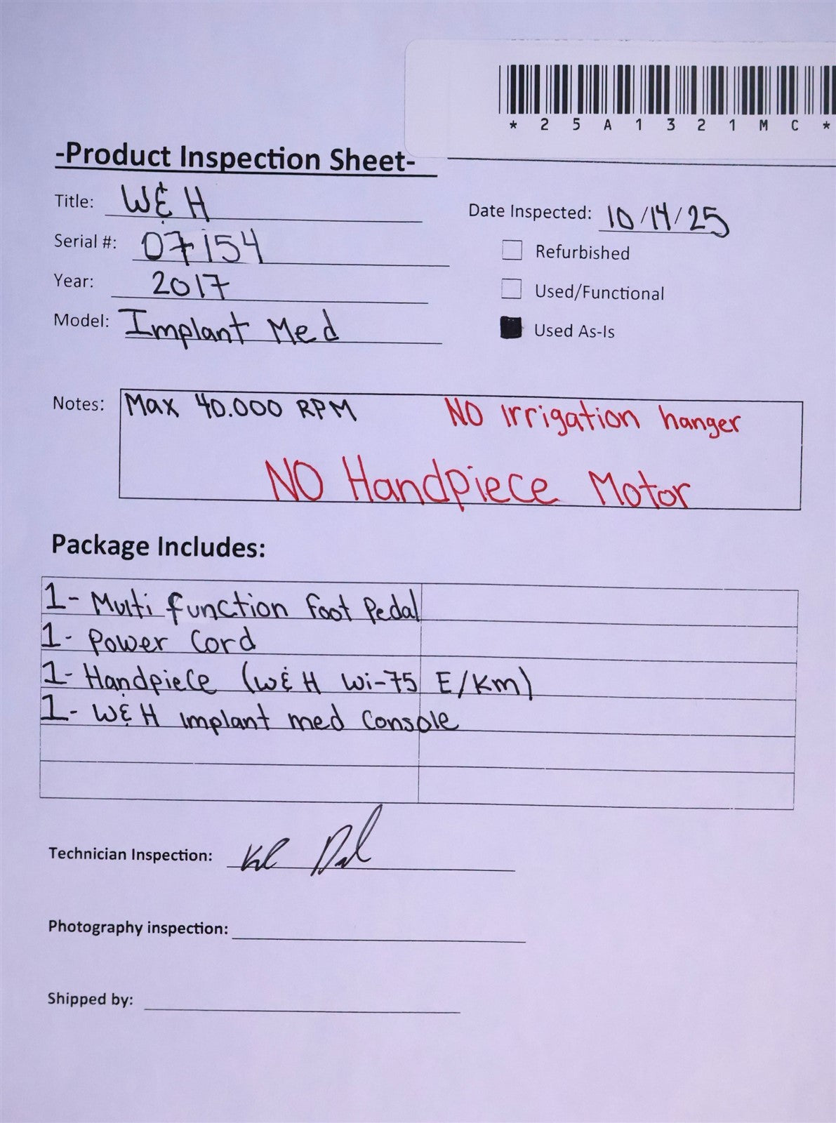 • Serial Number: (( IMPLANTMED s# 07154 )) - (( W&H Wi-75 E/KM s# 57334))