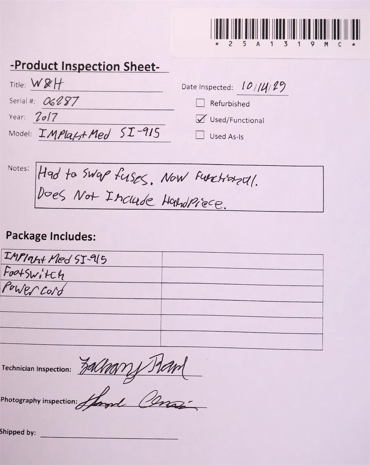 Your purchase will NOT include: HandpieceThis product is pre-owned and may not include the same accessories as a new, unused unit. - other accessories not shown or listed here.This item has undergone a thorough visual inspection and functional testing to check for any and all defects. The unit has been confirmed to be in complete working condition, with no issues or malfunctions detected.