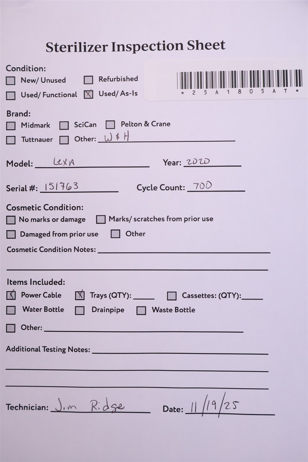 1 - W&H Lexa Autoclave Steam Sterilizer 4 - Sterilizing Trays w/ Rack 1 - Power Cord