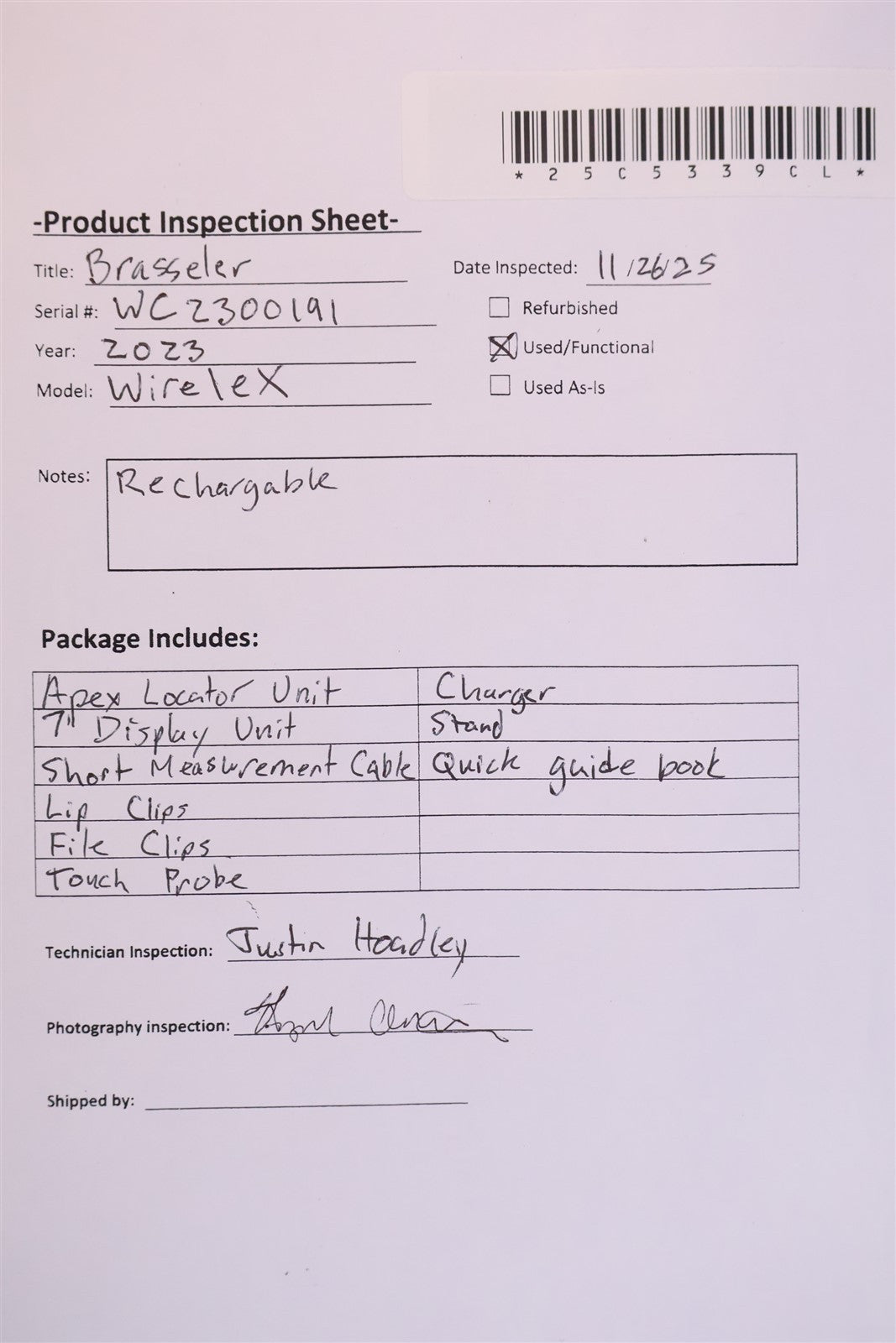 Bluetooth Apex Locator Unit, 7" Display Unit, Short Measurement Cable, Lip Clips, File Clips, Touch Probe, Charger, Stand, Quick Guide Book