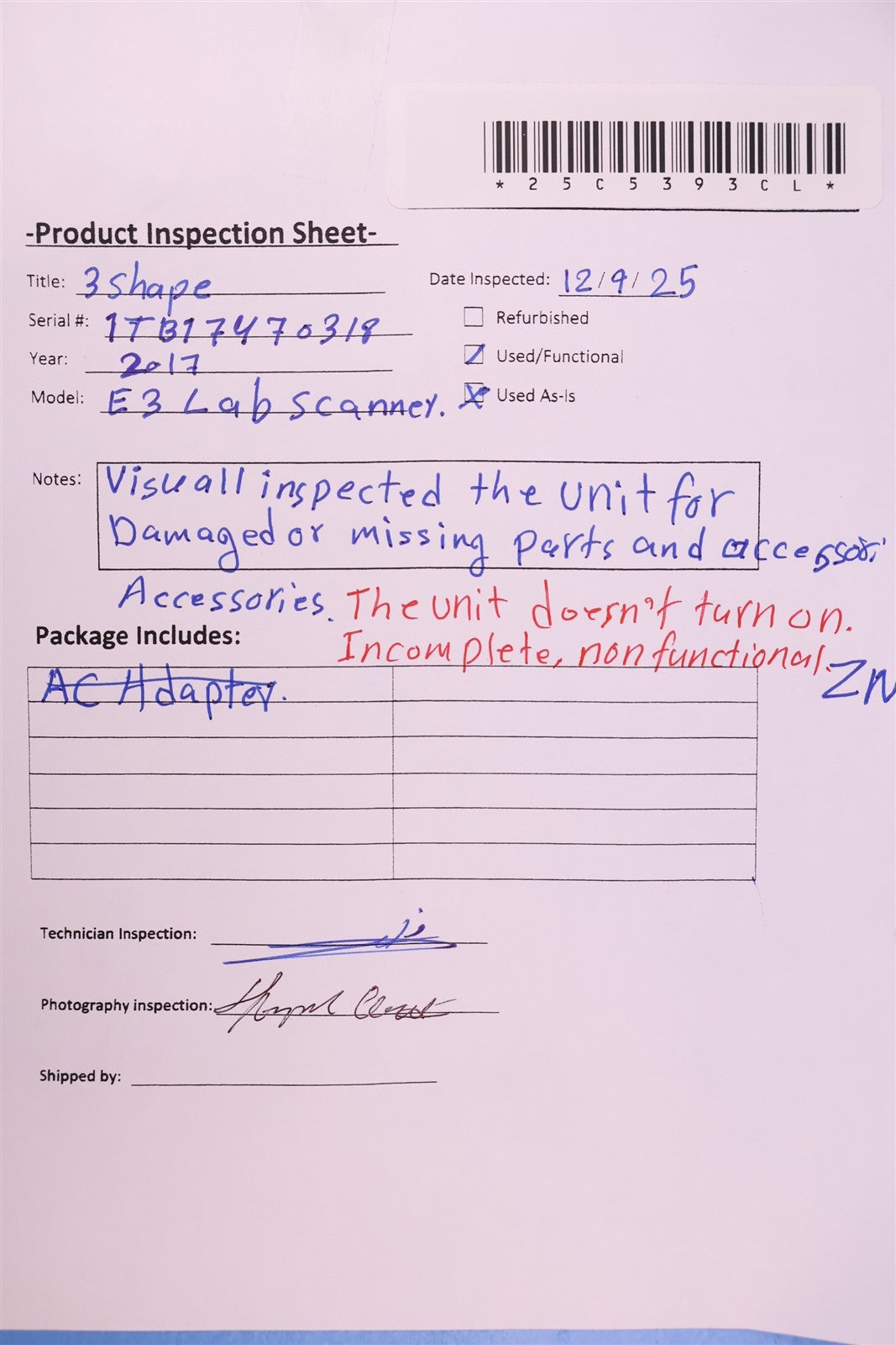 Atlas Resell Management has more experience testing and shipping CEREC and other CAD/CAM units than anyone else on eBay. Just check out the wide selection of CAD/CAM units in our store.We're proud to be the most trusted source for quality used CAD/CAM units in the pre-owned dental equipment market. Your purchase will NOT include: - other accessories not shown or listed here.Visually inspected the unit for any damaged or missing parts and accessories. The unit doesn;t turn on, Nonfunctional, incomplete. ZN