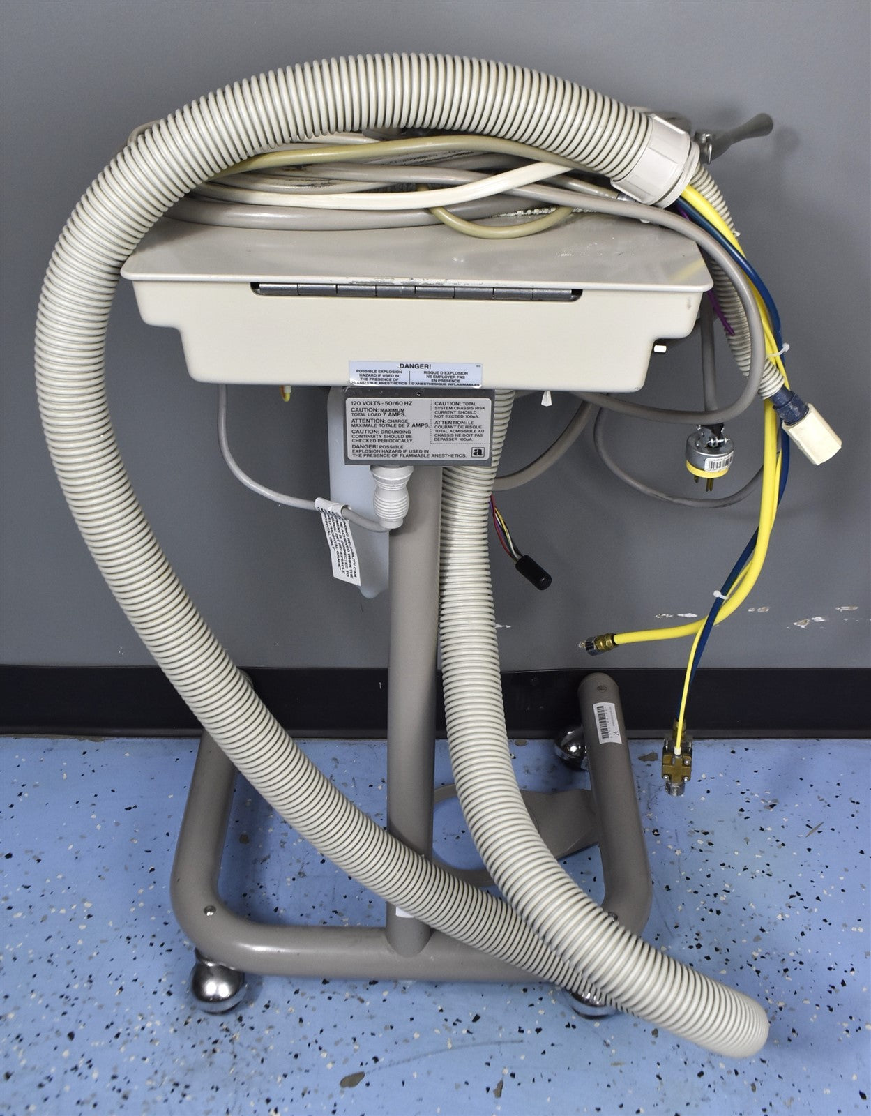 Your purchase will NOT include:This product is pre-owned and may not include the same accessories as a new, unused unit. - other accessories not shown or listed here. Automatic Handpiece Control: Activates each handpiece only when lifted from its holder, ensuring safety and efficiency. Ergonomic Design: Conveniently located controls and indicators with autoclavable adjustment keys for ease of use. Comprehensive Instrumentation: Includes drive air pressure gauge, water outlet with flow control, coolant water flow controls, and handpiece dry block conversion. Integrated Foot Control: Allows hands-free operation for greater convenience during procedures. Built-in Oil Collector: Maintains handpiece performance and prolongs longevity. Compact and Mobile: Lightweight design with smooth caster wheels for easy positioning and movement. Versatile Compatibility: Suitable for various dental procedures, accommodating up to four handpieces. Power Requirements: 100/110-120/220-240 VAC, 50-60 Hz. Minimum Air Requirement: 2.5 cfm at 80 psi. Minimum Water Requirement: 1.5 gpm at 40 psi. Minimum Vacuum Requirement: 12 cfm at 8 in Hg.
