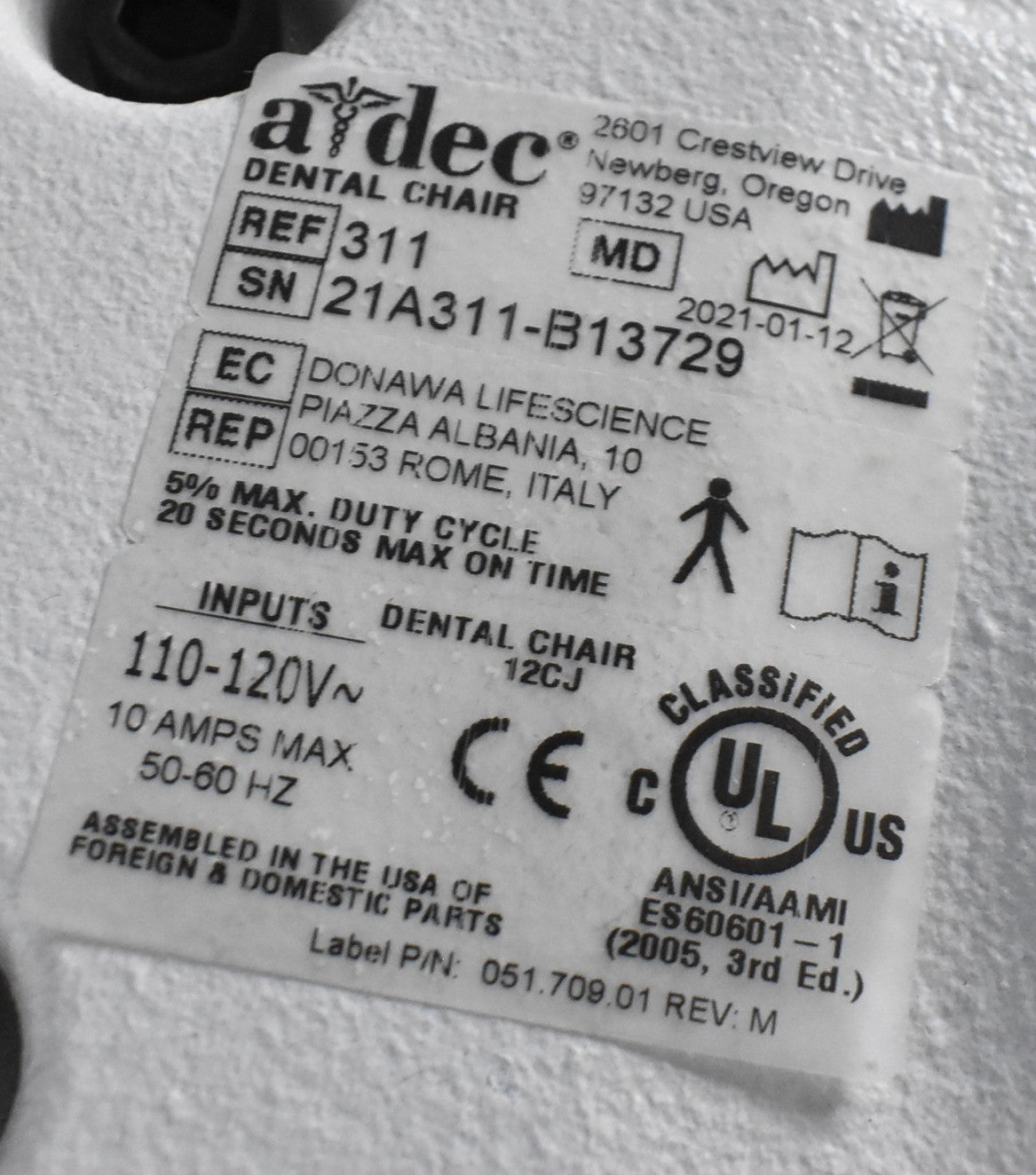 - Exam Chair Serial Number: 21A311-B13729