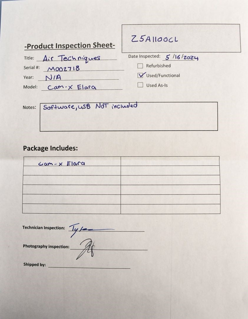 Your purchase will NOT include: Software USBThis product is pre-owned and may not include the same accessories as a new, unused unit. - other accessories not shown or listed here.I set up this camera with our tester laptop. I took photos of the images that this camera produced and they can be seen in the pictures. This camera is fully functional and is in pretty good cosmetic condition.