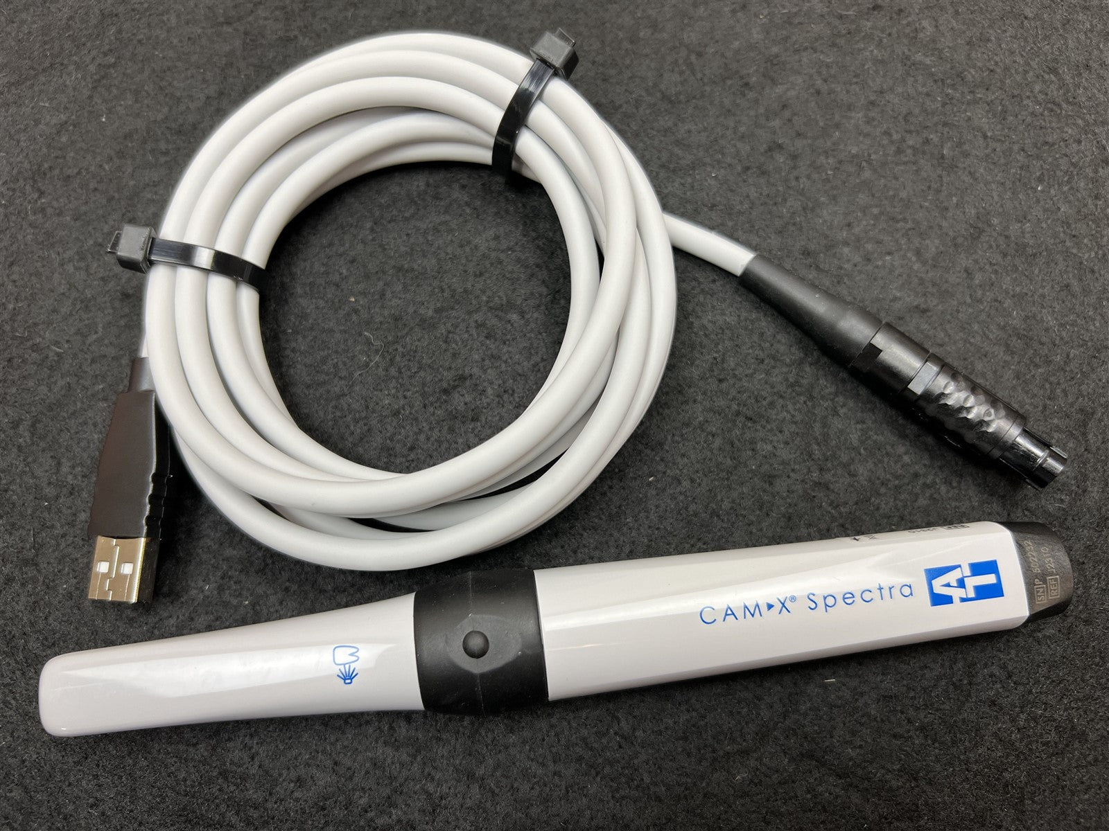 Your purchase will NOT include: This product is pre-owned and may not include the same accessories as a new, unused unit. - other accessories not shown or listed here.Unit is fully functional camera works great. Just comes with intraoral camera and USB port cord. Does not come with positioning spacers, handpiece holder, or download software.