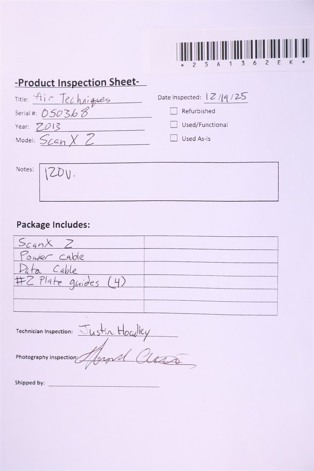ScanX 2, Power Cable, Data Cable, #2 Guide Plates (4)
