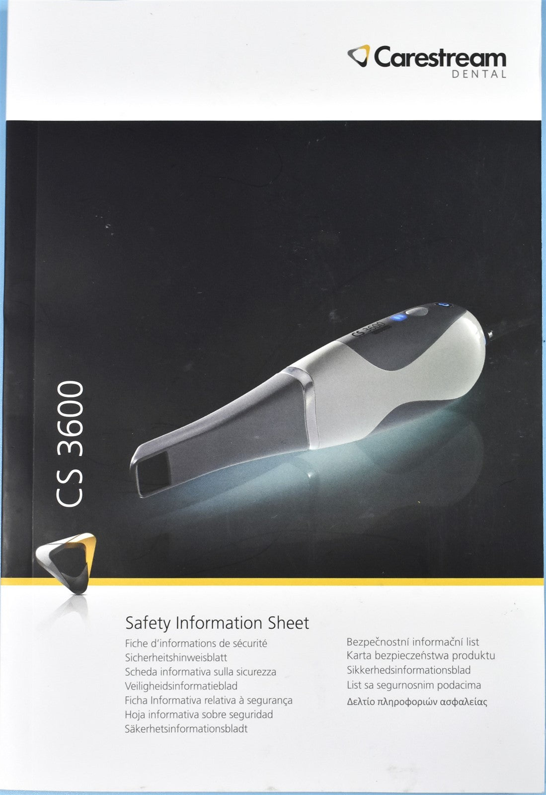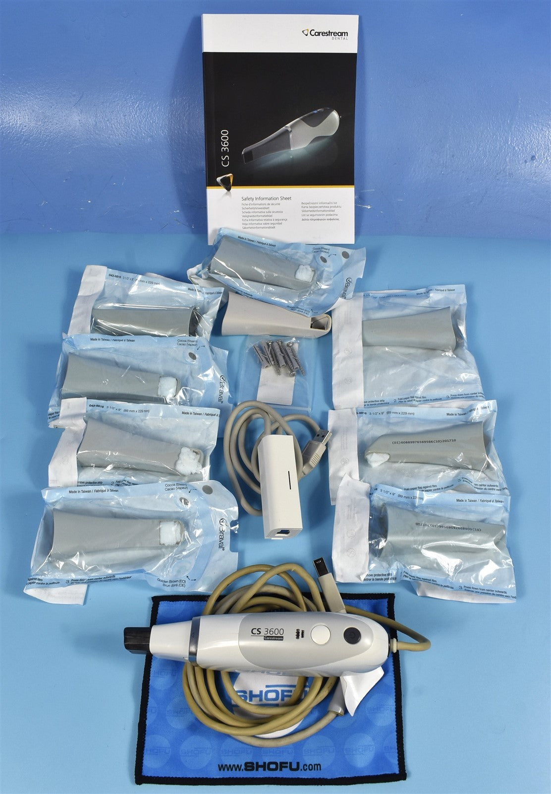 Carestream CS3600, USB 120 volt power supply, x9 tips, Case, safty information sheet.