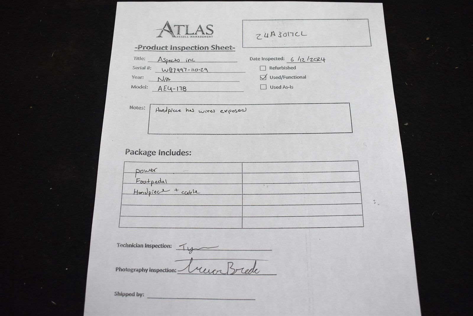 I set this item up and tested. This unit works great on a variety of speeds and ratios and is fully functional. The wires are exposed on the handpiece but it works fine. Good cosmetic condition.