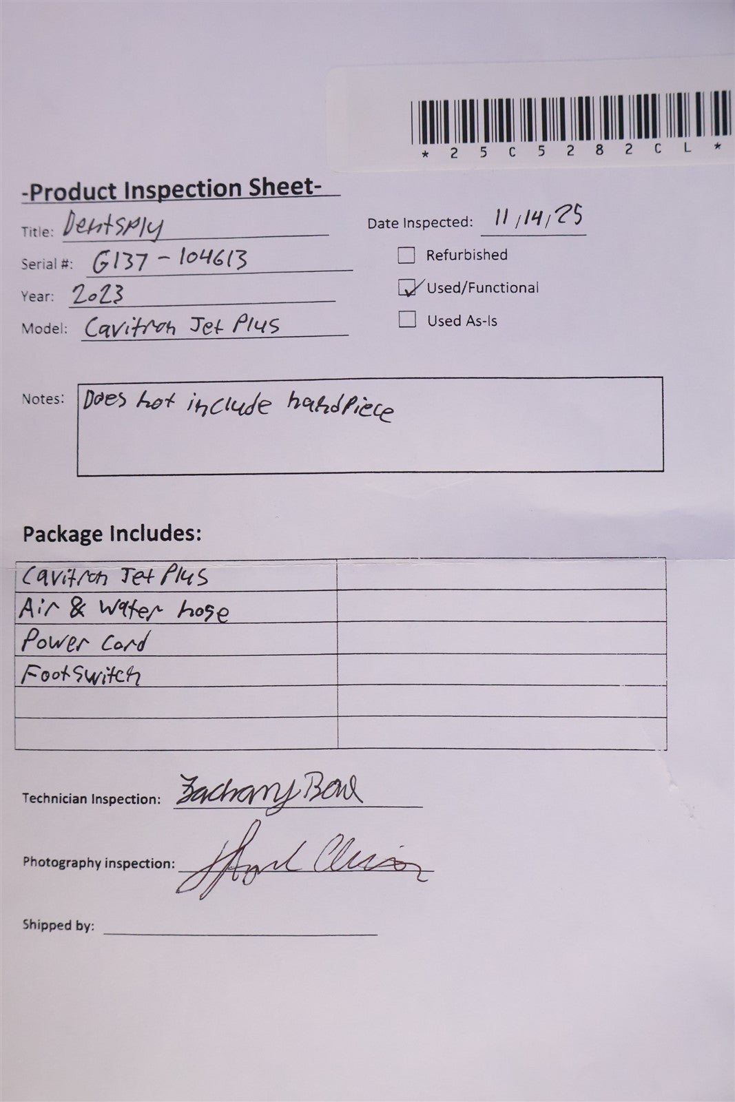 Your purchase will NOT include: HandpieceThis product is pre-owned and may not include the same accessories as a new, unused unit. - other accessories not shown or listed here.This item has undergone a thorough visual inspection and functional testing to check for any and all defects. The unit has been confirmed to be in complete working condition, with no issues or malfunctions detected.