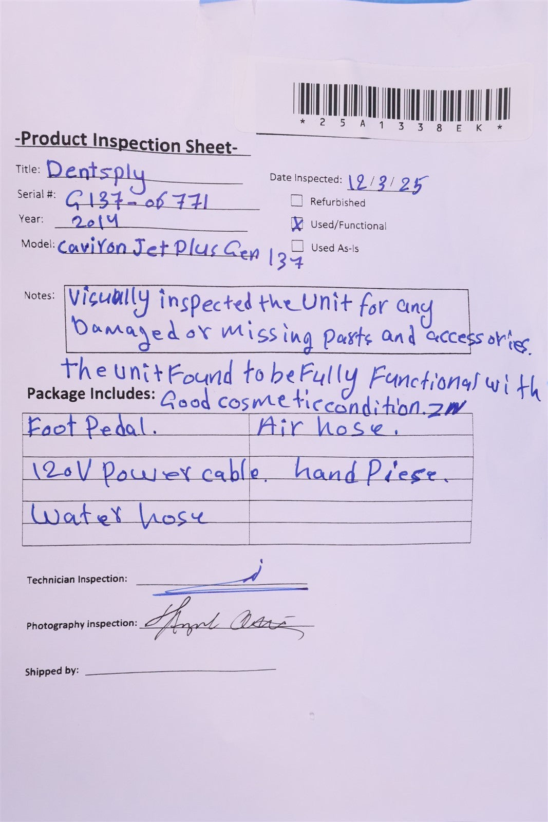 Foot pedal, 120V Power cable, Water Hose, Air hose, Hand piece.