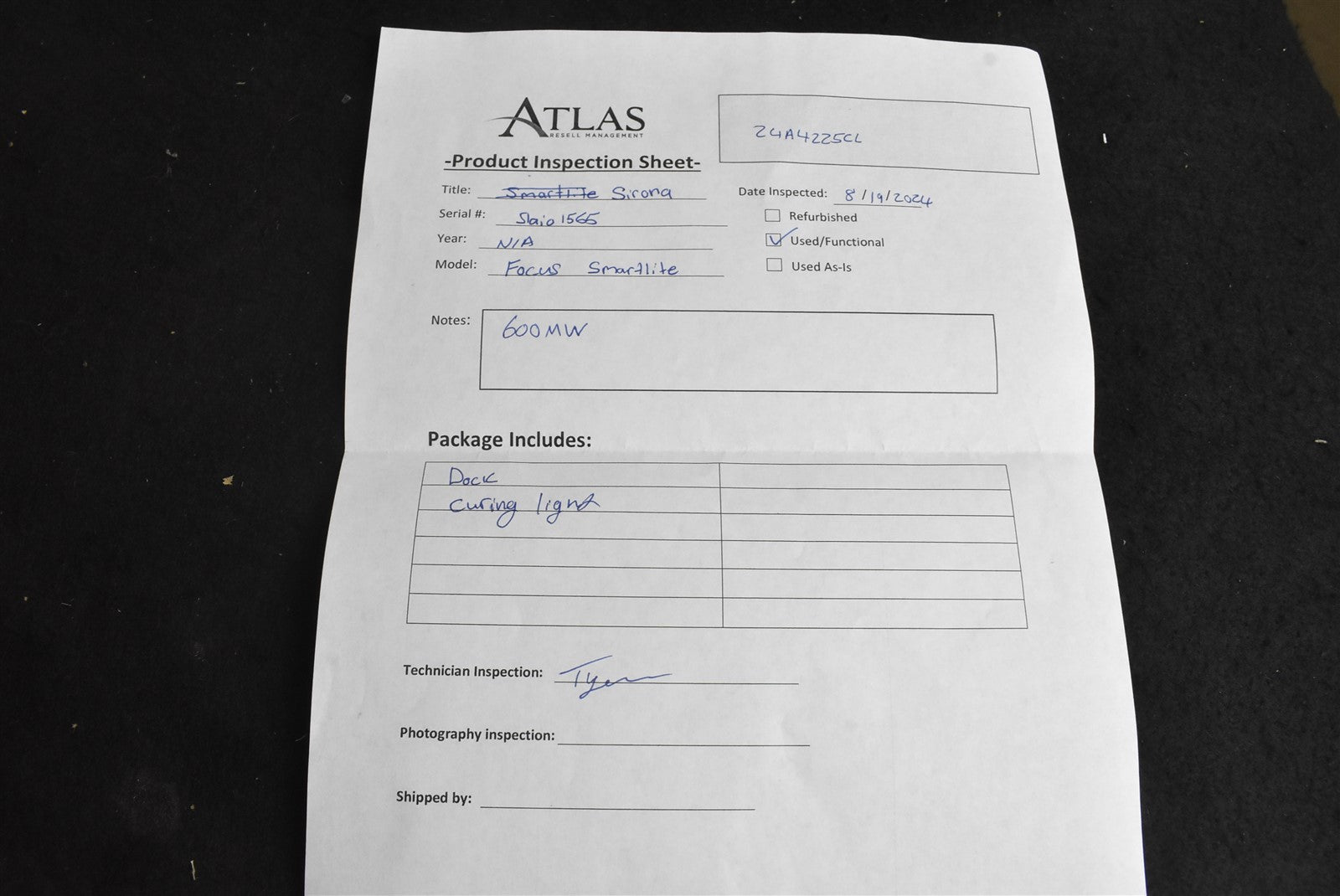 I plugged this item in and let it charge for a few. I then tested the unit by firing it into our light reader. This unit reads at about 600 MW. Anything over 300 MW is considered normal output. So this unit is fully functional and is in good cosmetic condition.