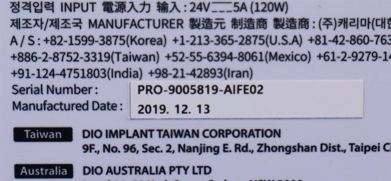 - Serial Number: Pro-9005819-ALFE02