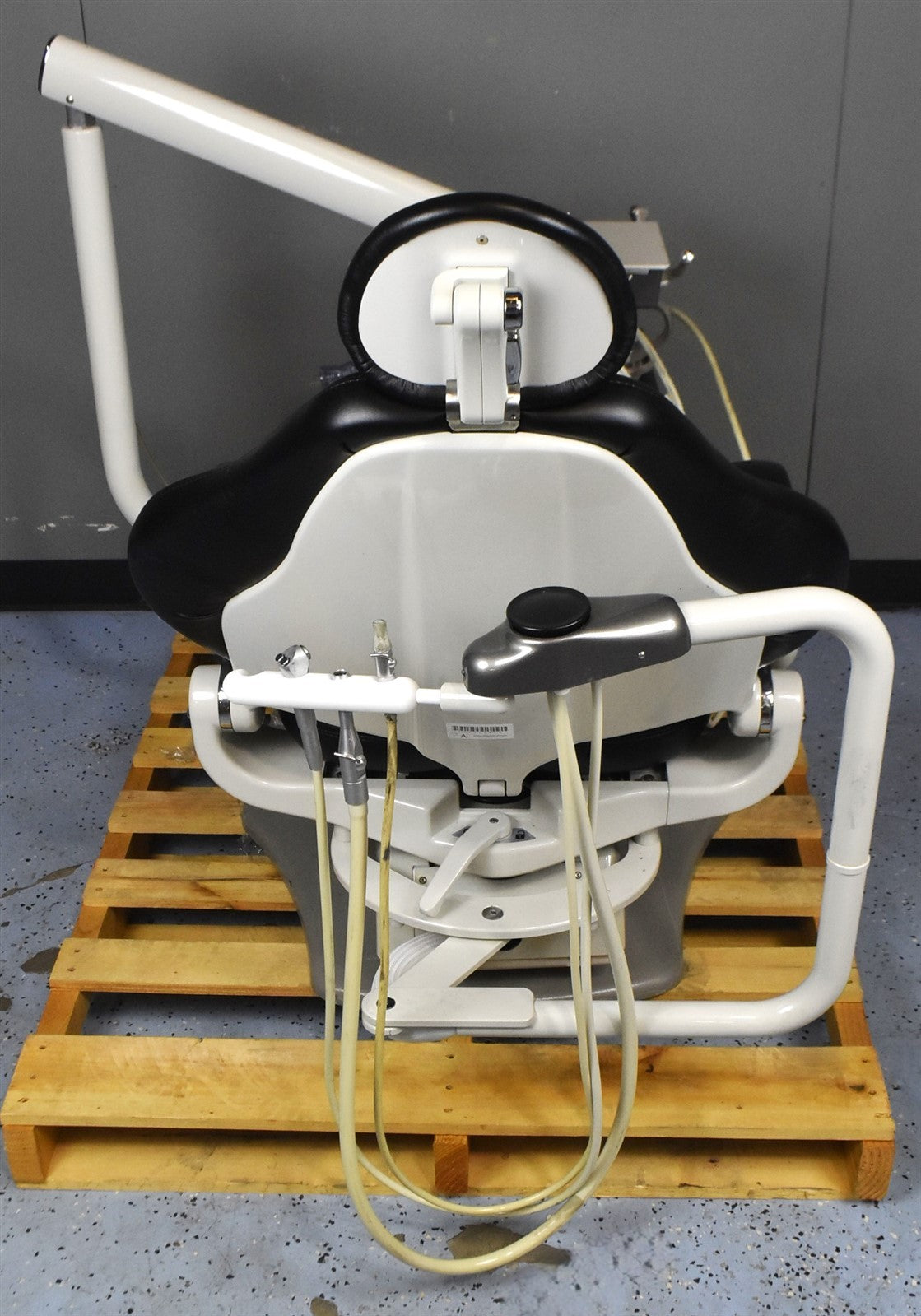 Forest 3900 unit is fully operational. The delivery system hoses show wear and will need replacement. There is a minor tear on the right armrest. The exam light appears to be in excellent condition but will require installation by a qualified technician to confirm functionality.