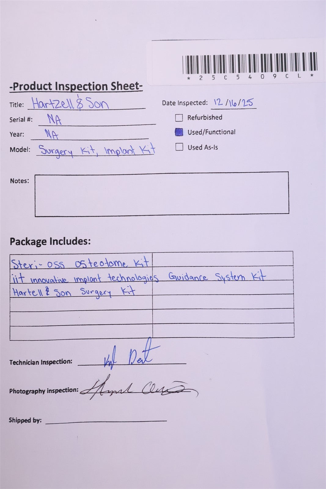 Visually inspected Hartzell&Son kit, Steri-Oss Osteotome Kit, iiT innovative implant technology guidance system kit. ALL in autoclavable cassettes.