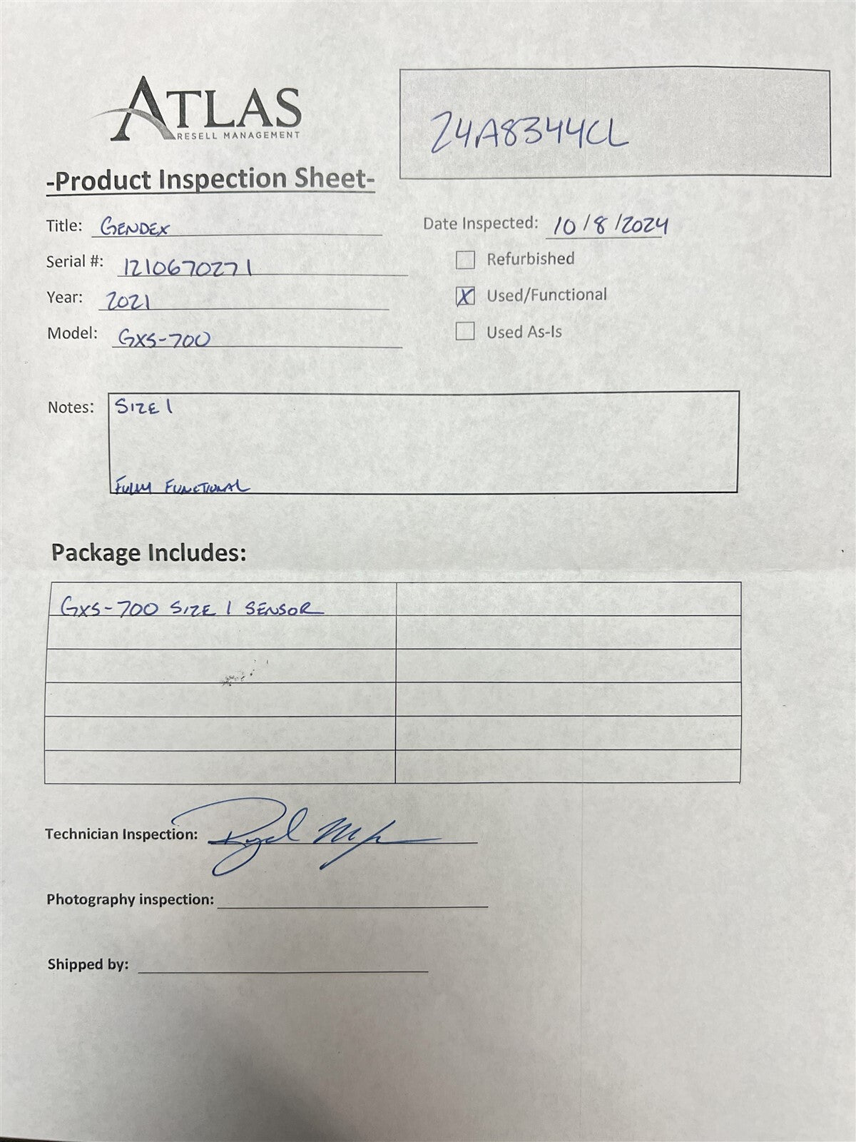 Your purchase will NOT include:Software, Drivers, ManualThis product is pre-owned and may not include the same accessories as a new, unused unit. - other accessories not shown or listed here.Attention BuyerFinding and/or installing imaging software and drivers for digital dental equipment is the buyer's responsibility.Apteryx is a company that sells easy-to-use imaging software that is compatible with most of the digital equipment in our store. Click here for more information about Apteryx and their pricing options.Click here for a list of equipment that is compatible with Apteryx imaging software.• Advanced CMOS sensor technology enhances image quality. • Captures high resolution images; providing more than 20 visible line pairs per millimeter. • Capabilities of a wide range of x-ray exposure settings to provides consistent image quality and consistent results • Rounded corners and smooth edge on the sensor for a comfortable fit. • Durable materials and components increase the life span of the product. • Direct USB Connectivity to computer. No docking stations or adapters required. • Lightweight and portable with hi-speed USB 2.0 connectivity for quick and easy use over multiple operatories. • An “Always Ready” feature that automatically recognizes radiation and starts image acquisition without the need to initiate through software. Visually inspected the unit for any damaged or missing parts and accessories. Function tested the unit and found it to be fully functional with excellent cosmetic condition.