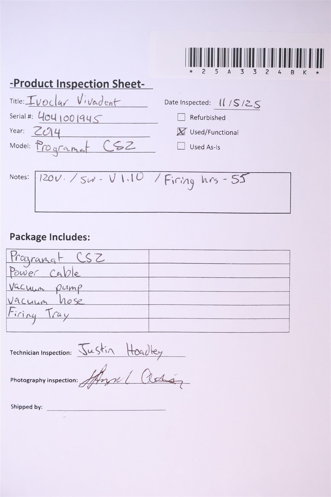 Programat CS2, Power Cable, Vacuum Pump, Vacuum Hose, Firing Tray