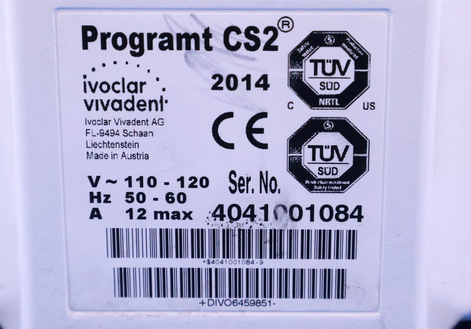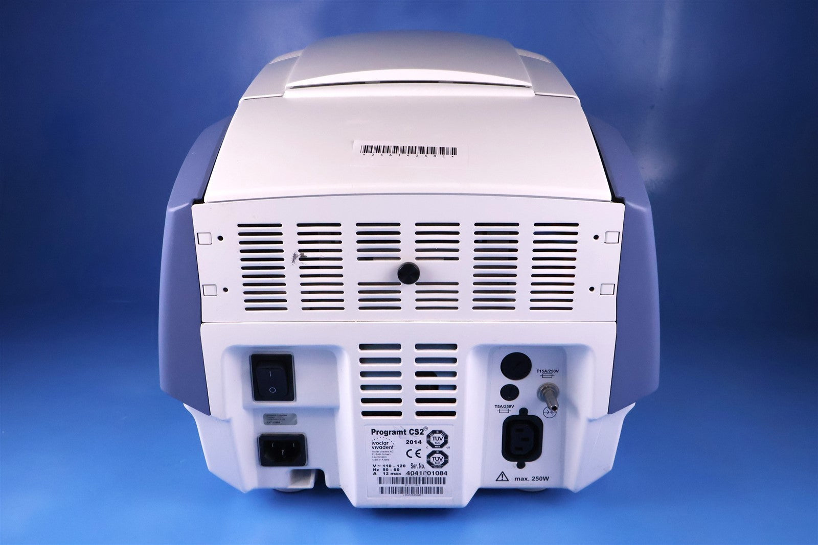 Prior to function testing this Ivoclar Vivadent Programat CS2, it was visually inspected for any damage or missing parts that would interfere with units complete desired functionality. Unit is COMPLETE and free of significant damage. Properly set unit up, powered unit on. Unit successfully powered on, passing self test. Units TOUCH SCREEN DIGITAL DISPLAY illuminated a clear interface, that responds when interacted with. Unit did require dehumidification and temperature calibration. Unit successfully completed both maintenance programs with no complications. This Ivoclar Vivadent Programat CS2 is free of significant damage and in great mechanical condition. FINAL PRODUCT INSPECTION STATUS- PASSED/ FULLY FUNCTIONAL.